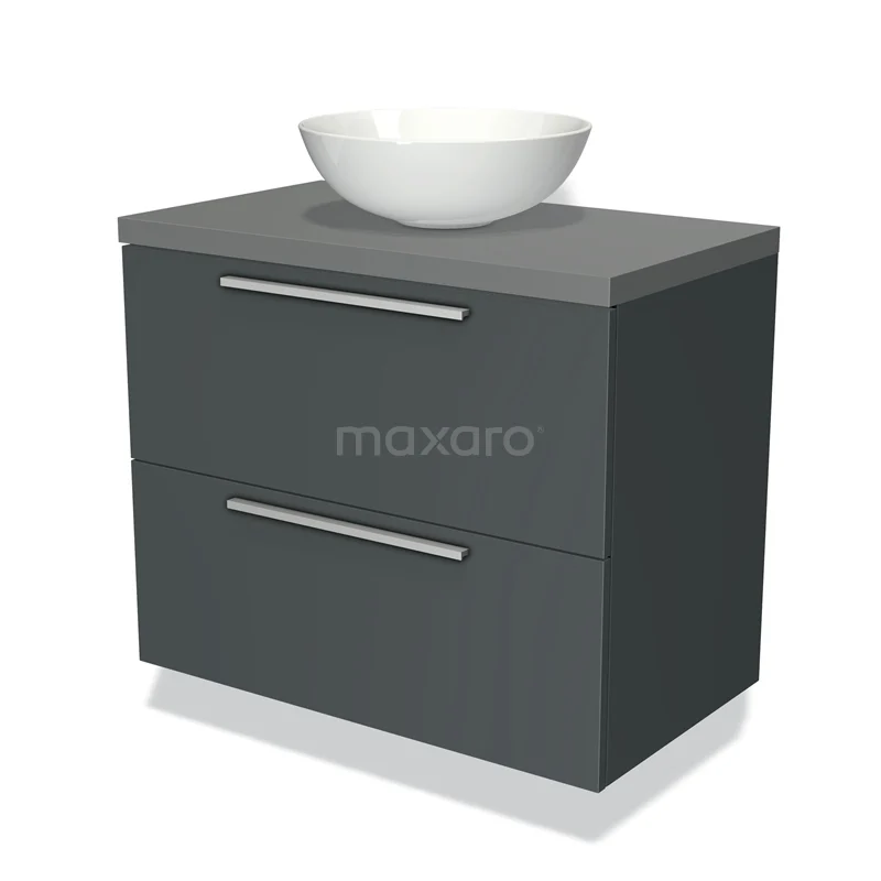 Modulo Plato Vanity units for countertop basin | 80 cm Dark grey Flat front Mid grey worktop 2 Stacked drawers