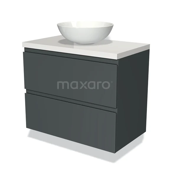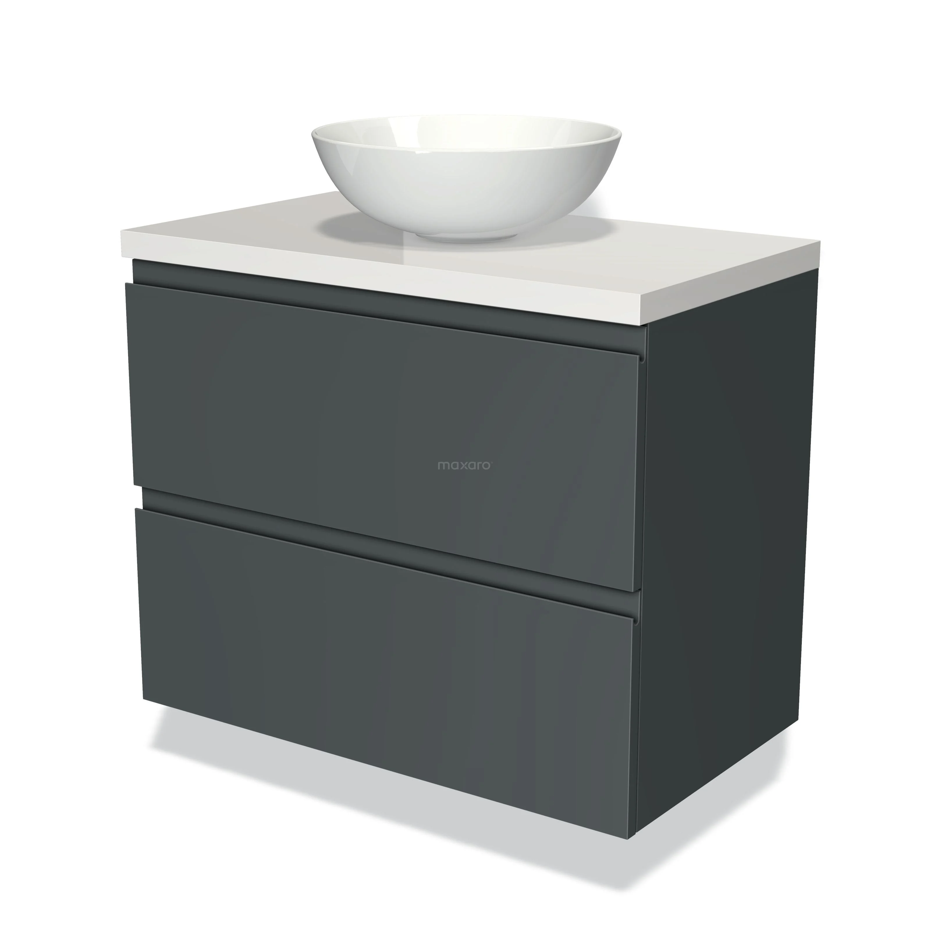 Modulo Plato Vanity units for countertop basin | 80 cm Dark grey Handle-less front High-gloss white worktop 2 Stacked drawers