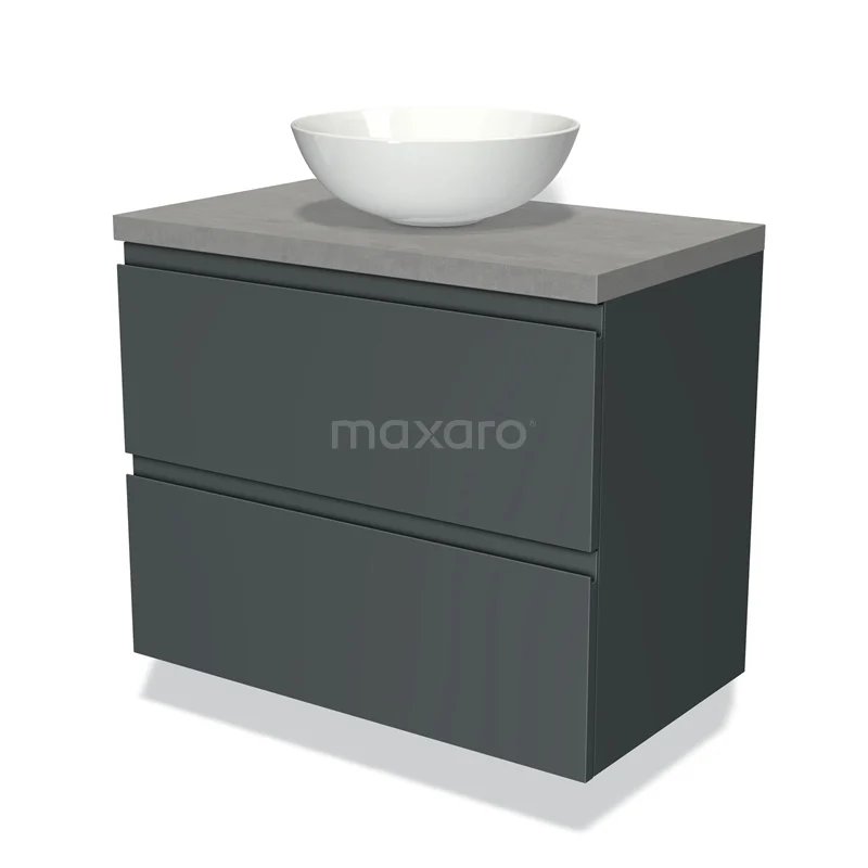 Modulo Plato Vanity units for countertop basin | 80 cm Dark grey Handle-less front Light grey concrete worktop 2 Stacked drawers