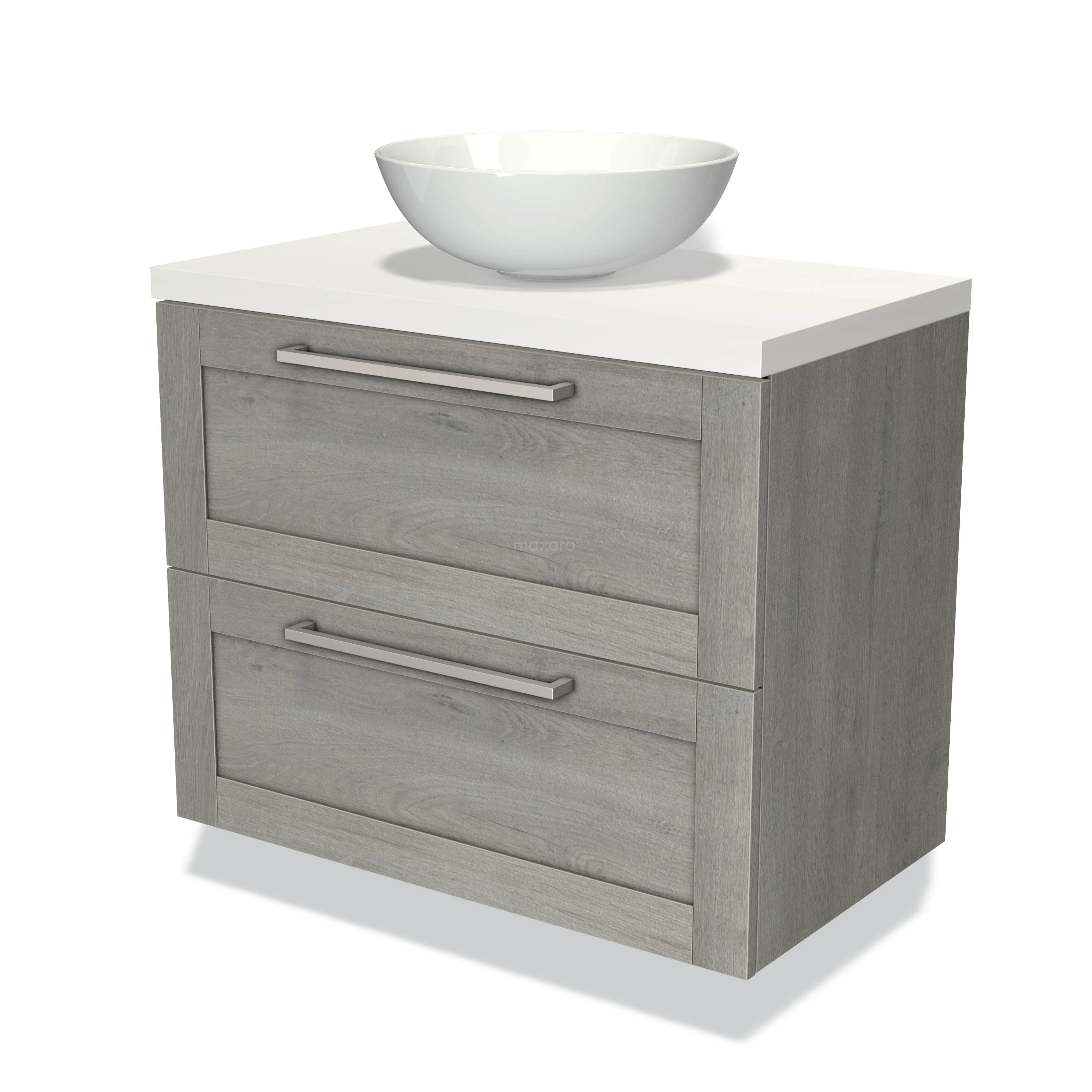 Modulo Plato Vanity units for countertop basin | 80 cm Grey oak Frame front Matte white worktop 2 Stacked drawers