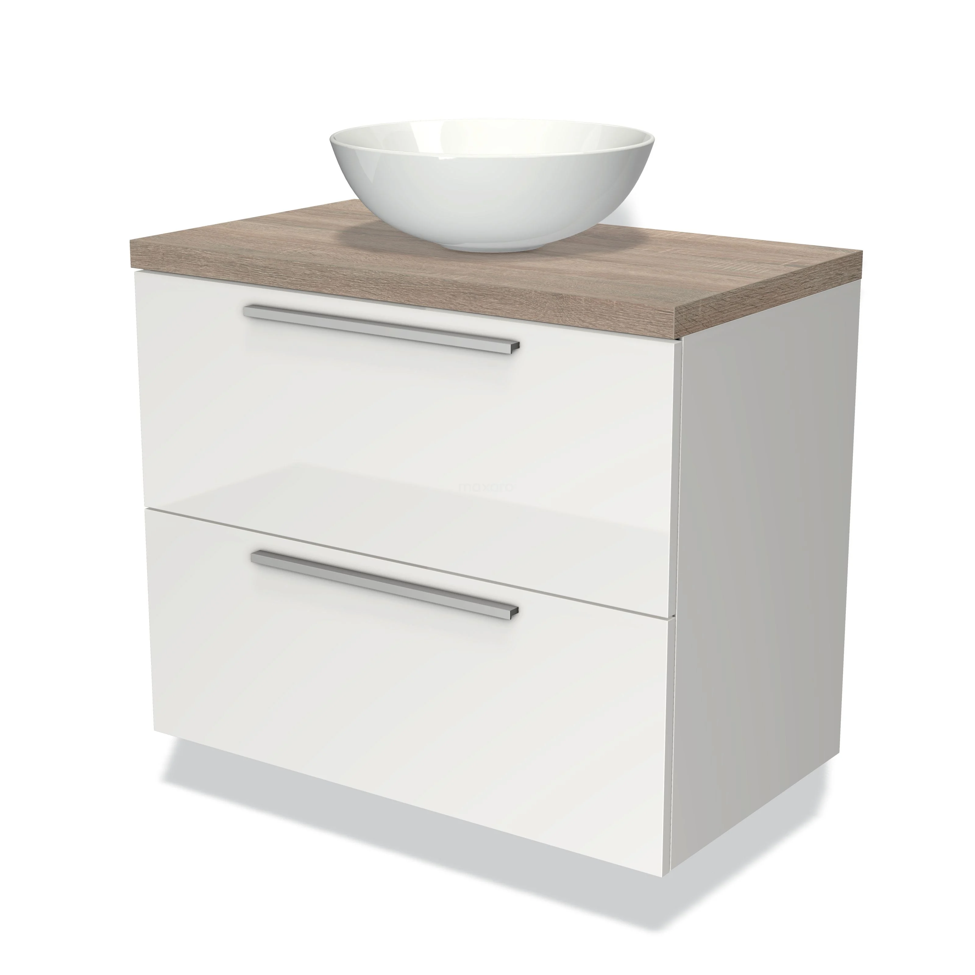 Modulo Plato Vanity units for countertop basin | 80 cm High-gloss white Flat front Oak worktop 2 Stacked drawers
