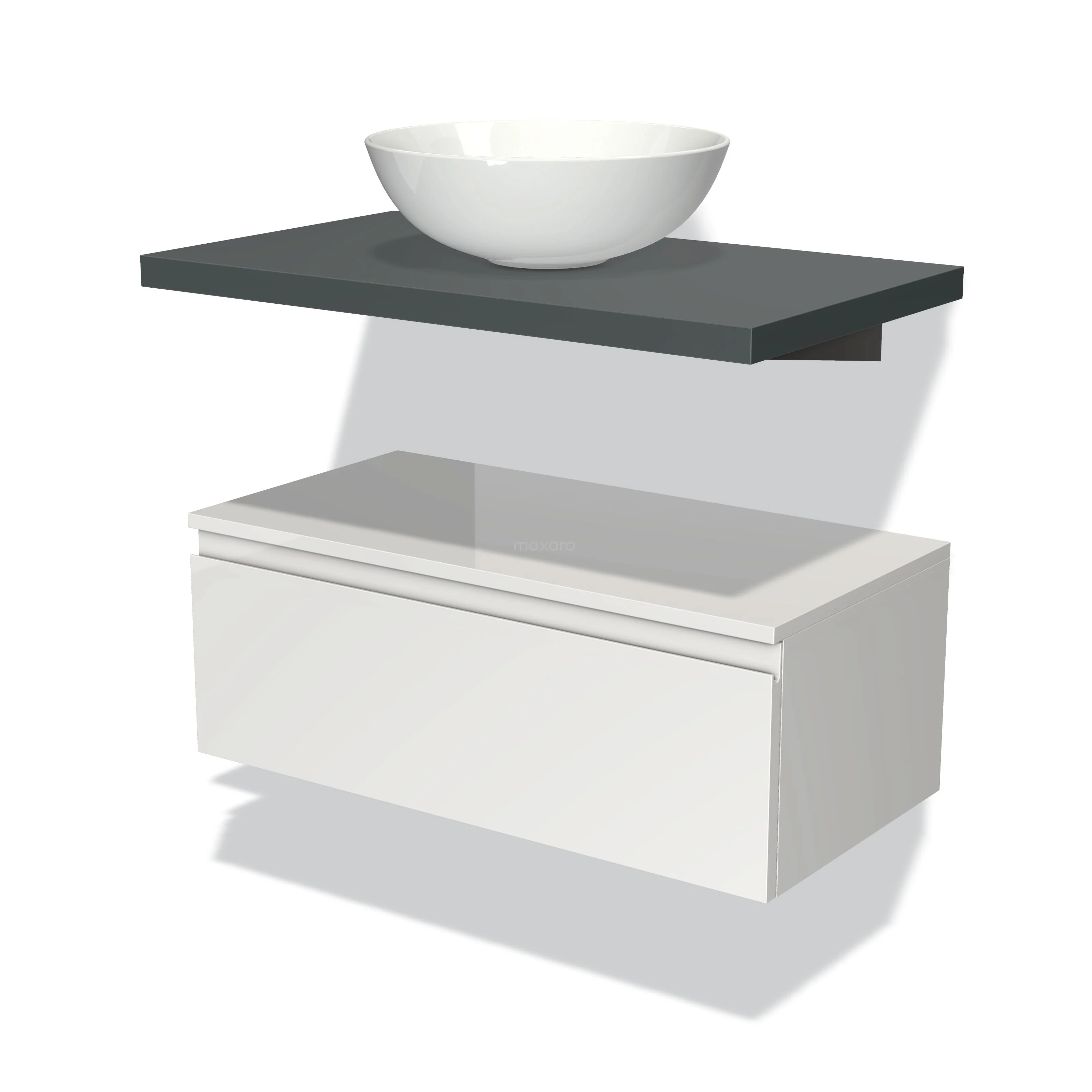 Modulo Plato Vanity units for countertop basin | 80 cm High-gloss white Handle-less front Dark grey worktop Low floating