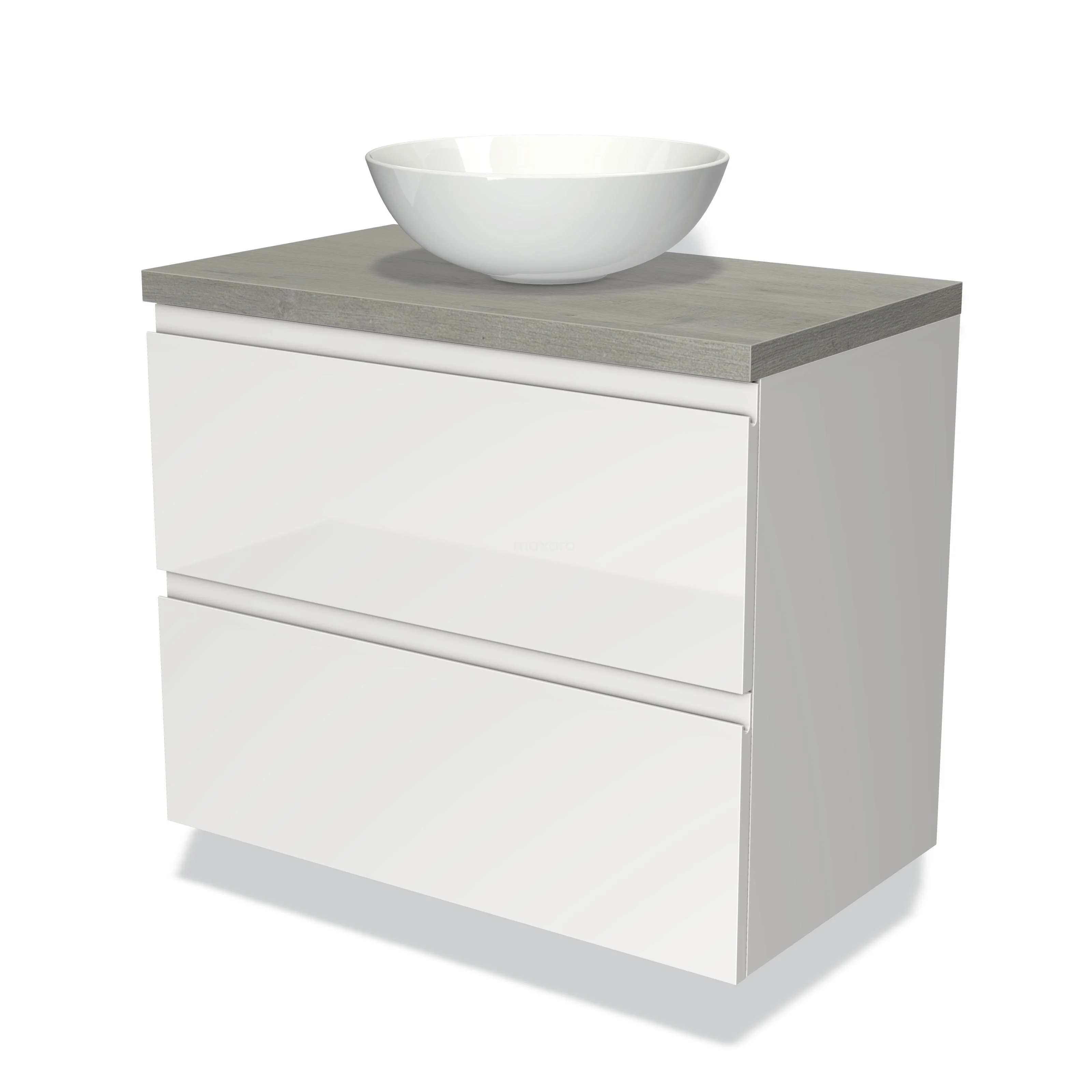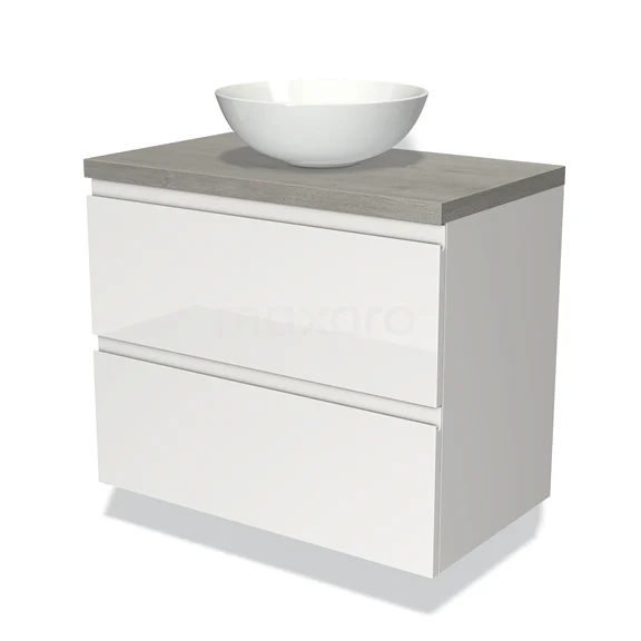 Modulo Plato Vanity units for countertop basin | 80 cm High-gloss white Handle-less front Grey oak worktop 2 Stacked drawers