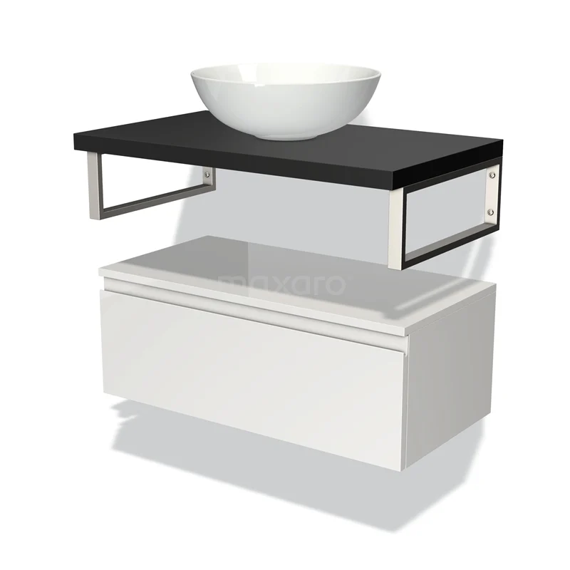 Modulo Plato Vanity units for countertop basin | 80 cm High-gloss white Handle-less front Matte black worktop Low floating