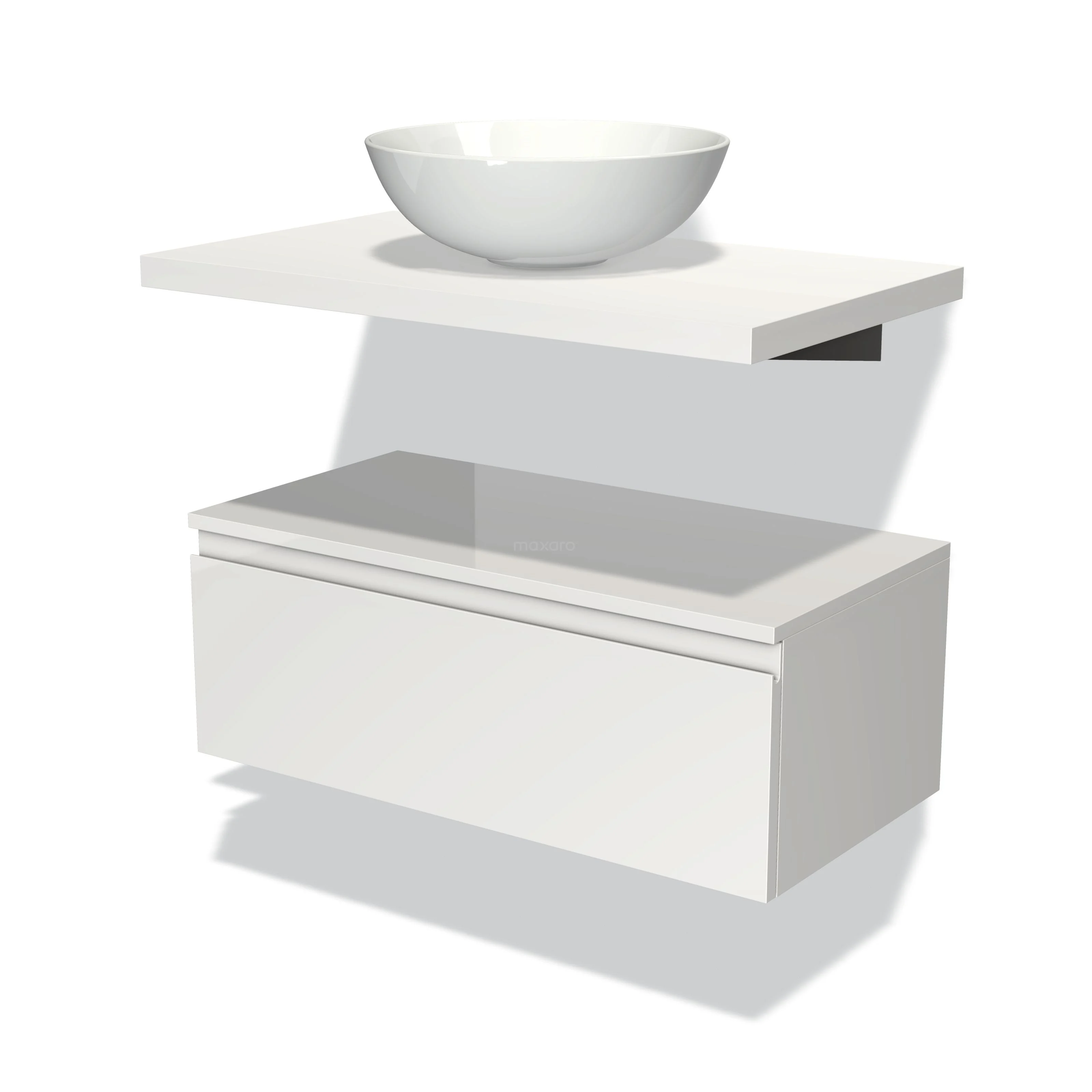 Modulo Plato Vanity units for countertop basin | 80 cm High-gloss white Handle-less front Matte white worktop Low floating