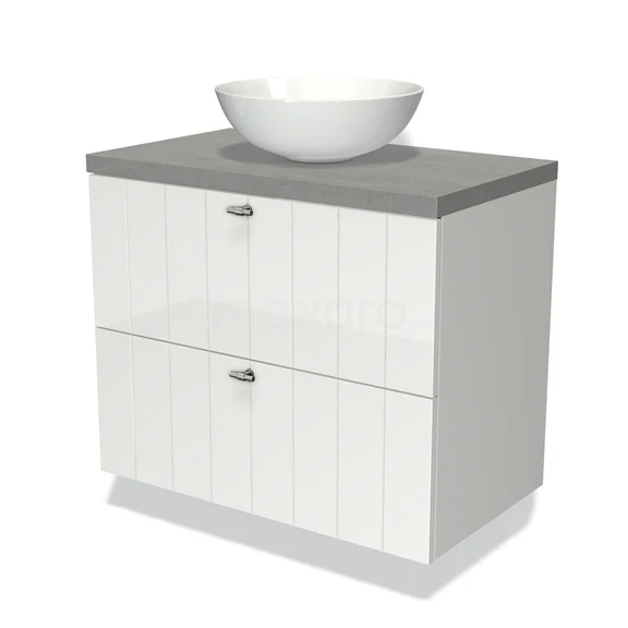Modulo Plato Vanity units for countertop basin | 80 cm High-gloss white Slat front Light grey concrete worktop 2 Stacked drawers