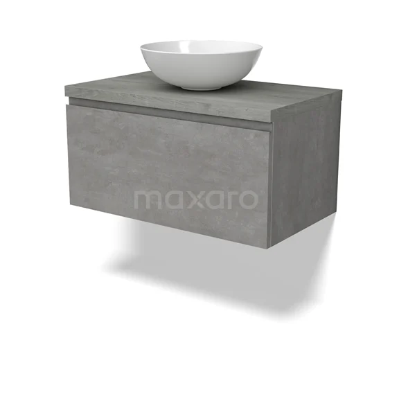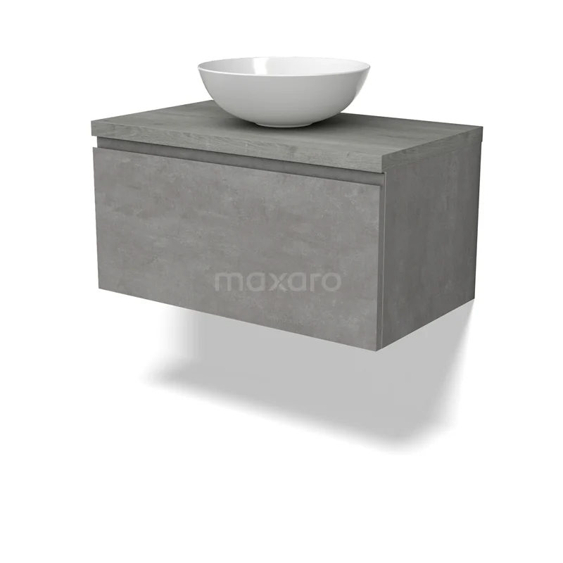 Modulo Plato Vanity units for countertop basin | 80 cm Light grey concrete Handle-less front Grey oak worktop 1 drawer