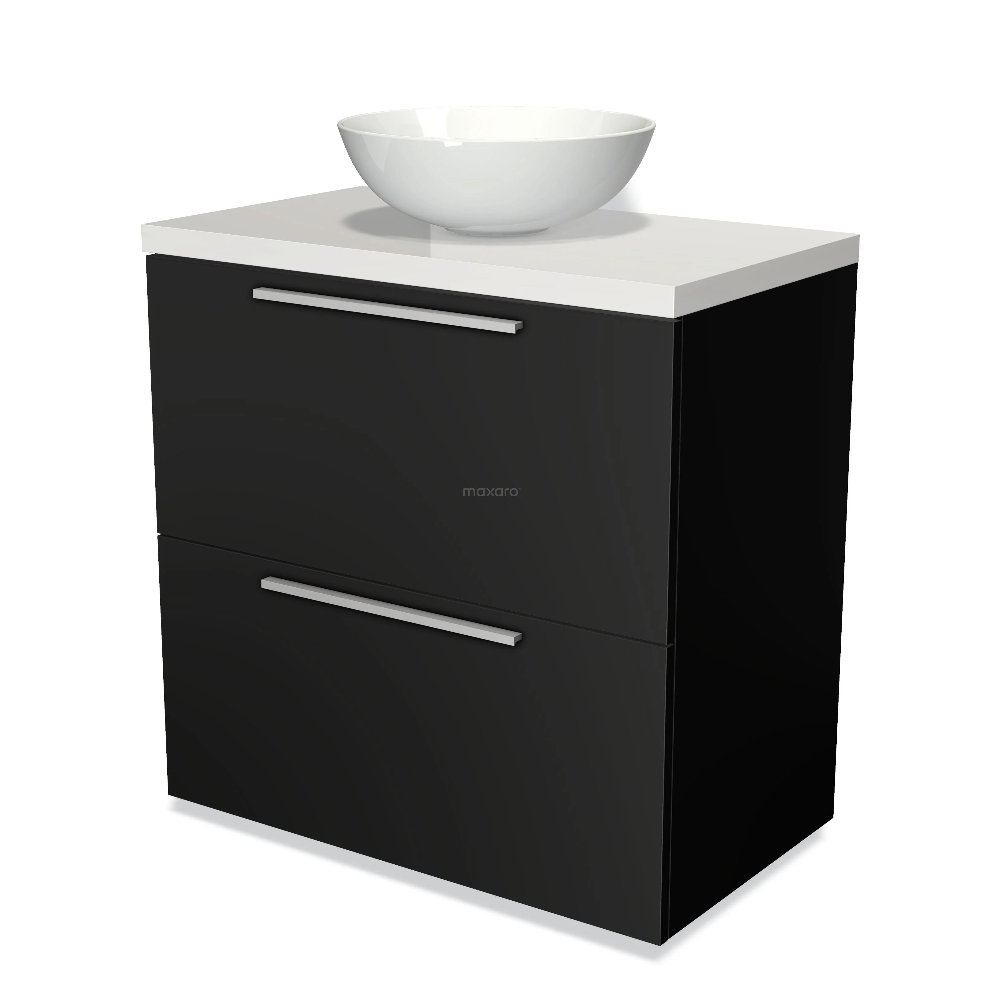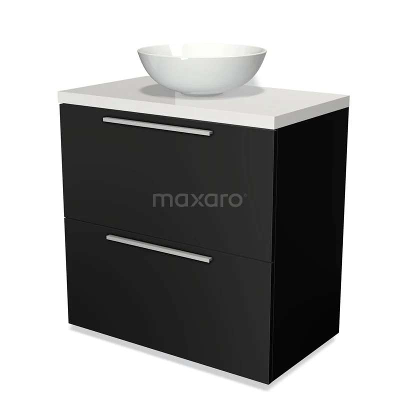 Modulo Plato Vanity units for countertop basin | 80 cm Matte black Flat front High-gloss white worktop 2 stacked drawers under each other