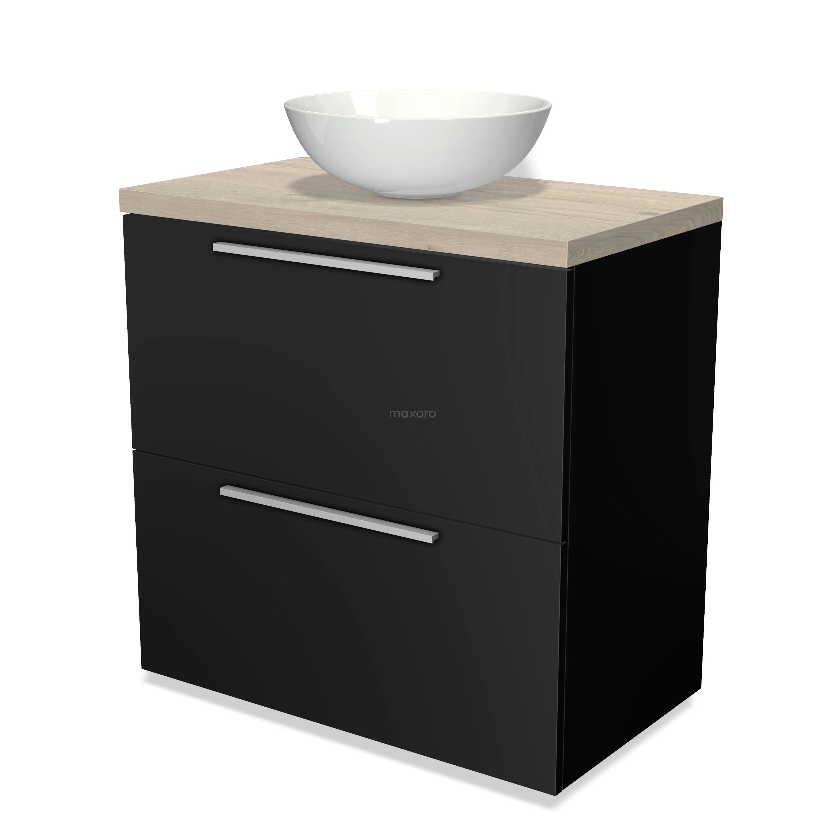 Modulo Plato Vanity units for countertop basin | 80 cm Matte black Flat front Light grey oak worktop 2 stacked drawers under each other