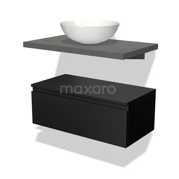 Modulo Plato Vanity units for countertop basin | 80 cm Matte black Handle-less front Dark grey concrete worktop Low floating