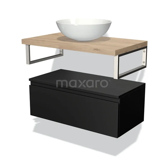 Modulo Plato Vanity units for countertop basin | 80 cm Matte black Handle-less front Light brown oak worktop Low floating