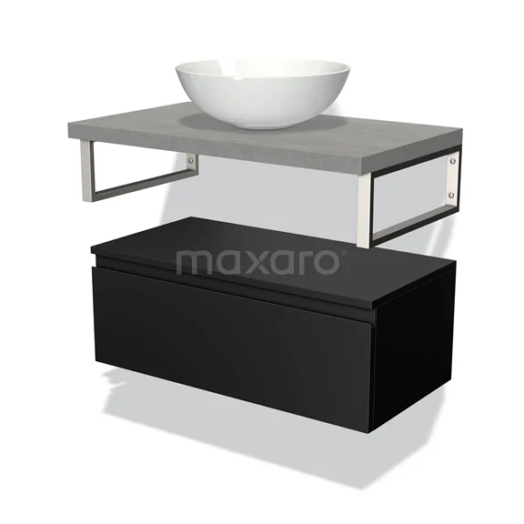 Modulo Plato Vanity units for countertop basin | 80 cm Matte black Handle-less front Light grey concrete worktop Low floating