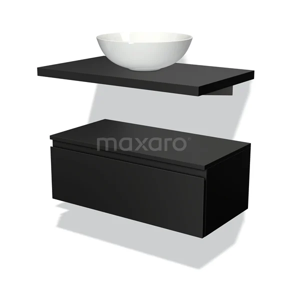 Modulo Plato Vanity units for countertop basin | 80 cm Matte black Handle-less front Matte black worktop Low floating