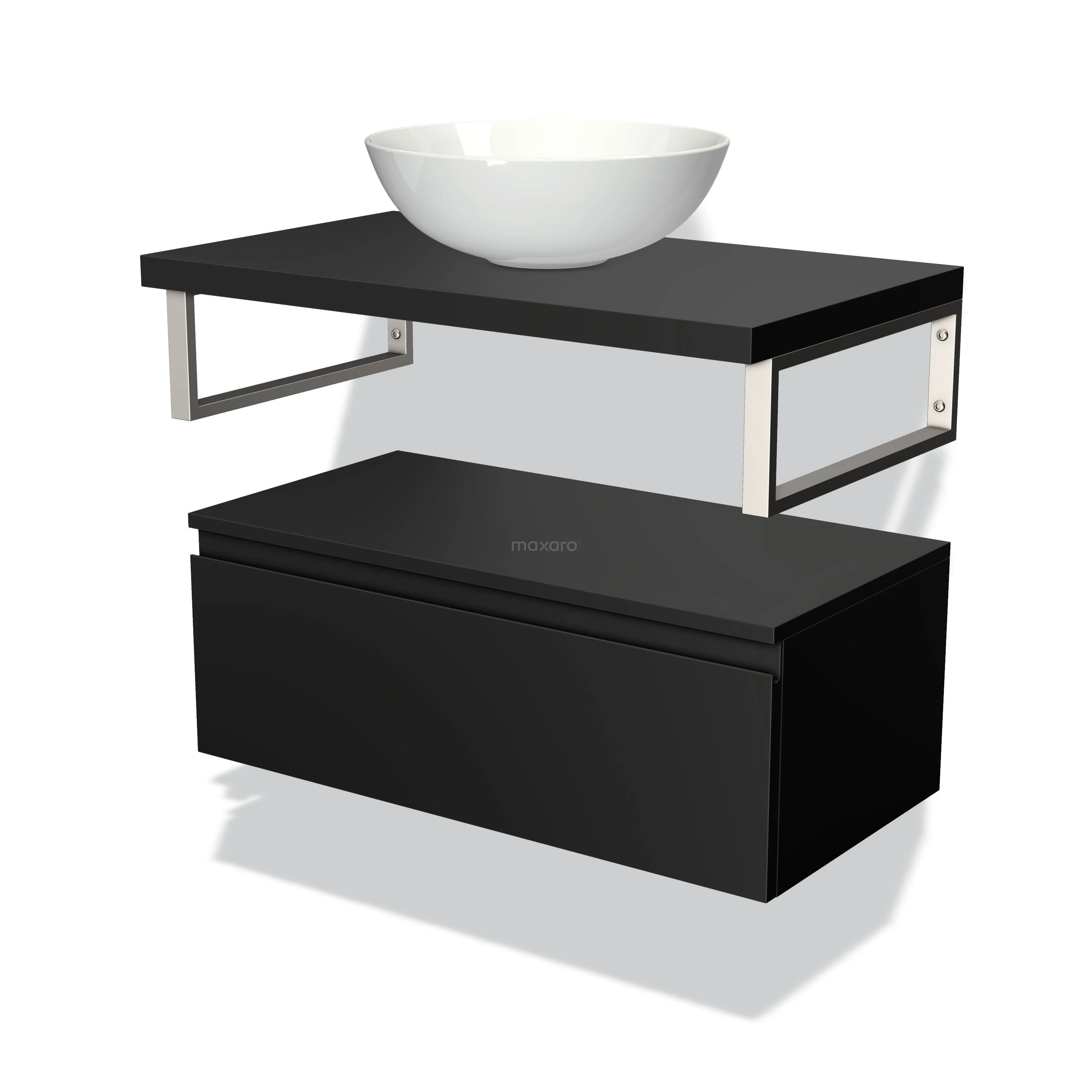 Modulo Plato Vanity units for countertop basin | 80 cm Matte black Handle-less front Matte black worktop Low floating
