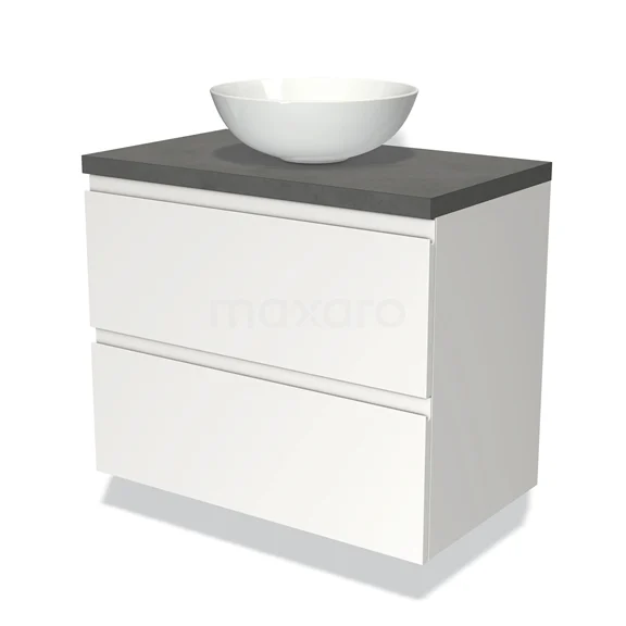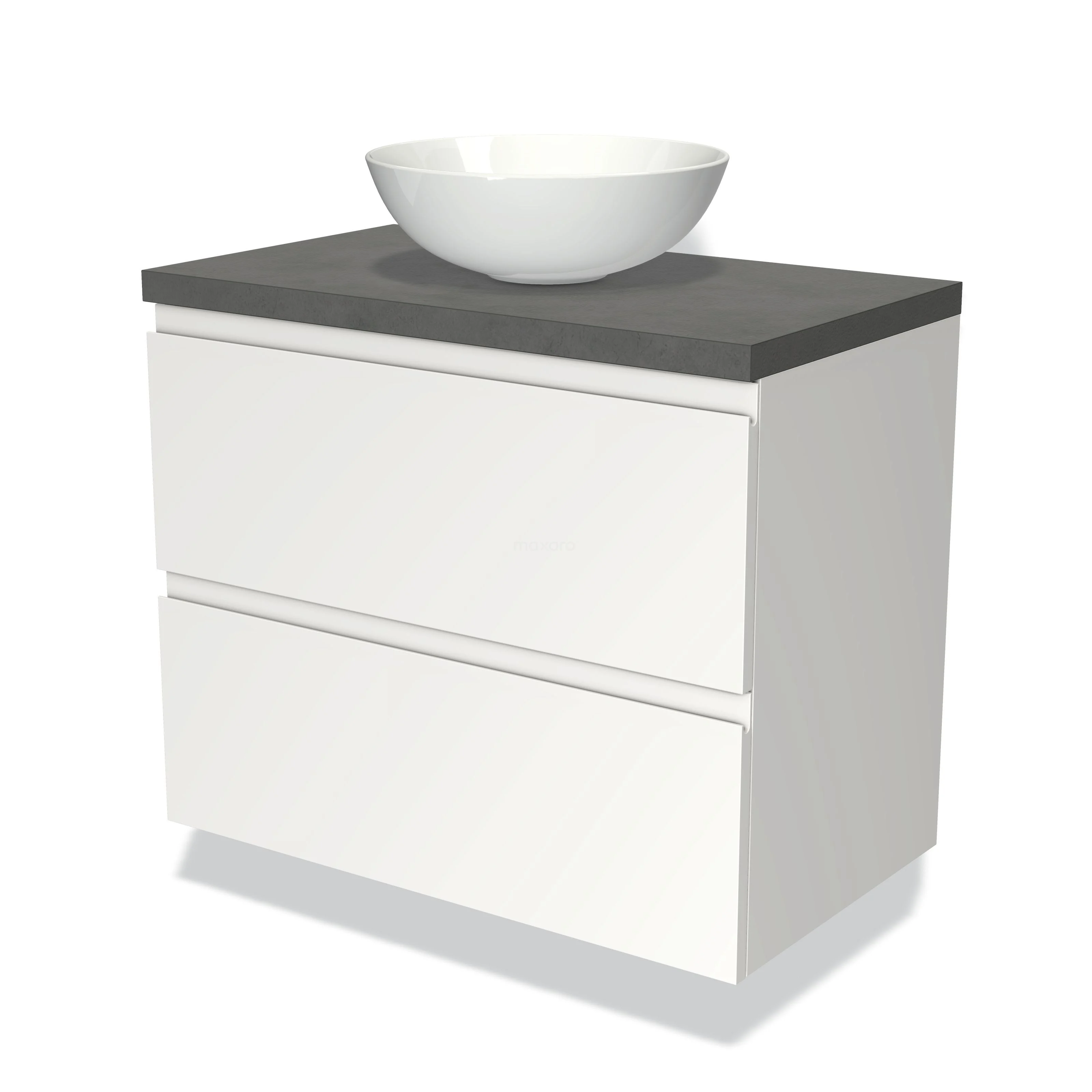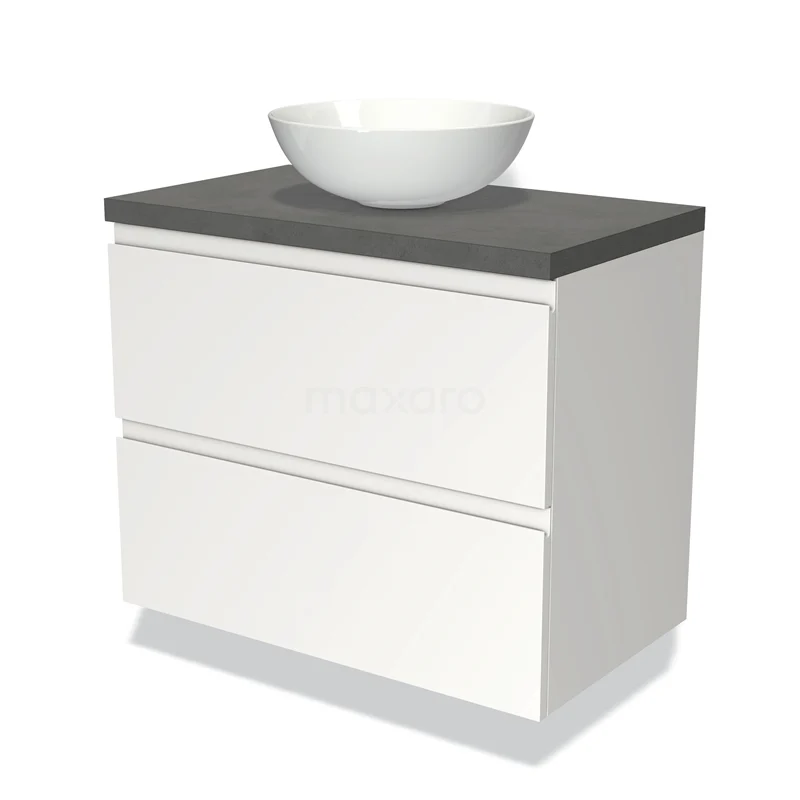 Modulo Plato Vanity units for countertop basin | 80 cm Matte white Handle-less front Dark grey concrete worktop 2 Stacked drawers