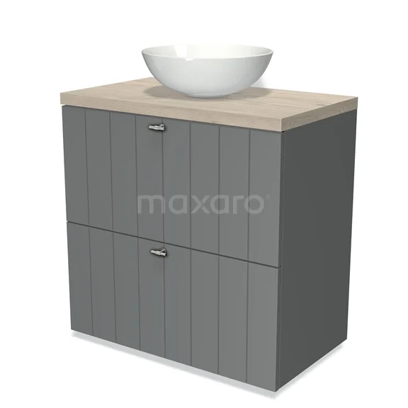 Modulo Plato Vanity units for countertop basin | 80 cm Mid grey Slat front Light grey oak worktop 2 stacked drawers under each other
