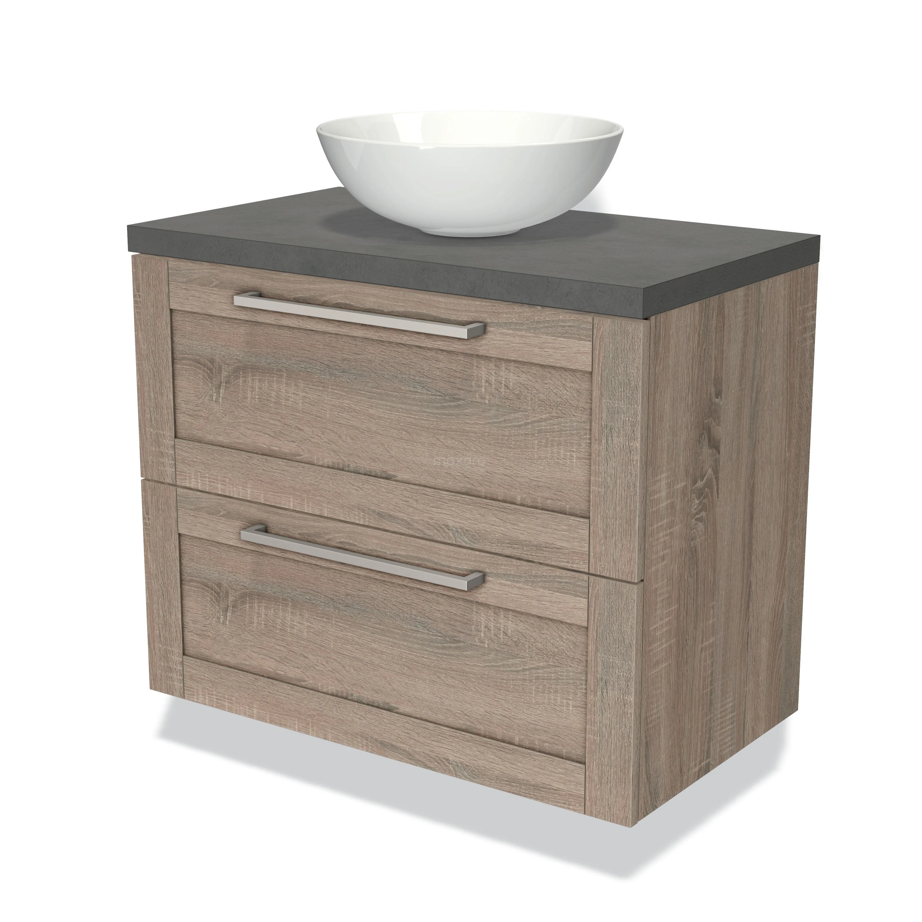 Modulo Plato Vanity units for countertop basin | 80 cm Oak Frame front Dark grey concrete worktop 2 Stacked drawers