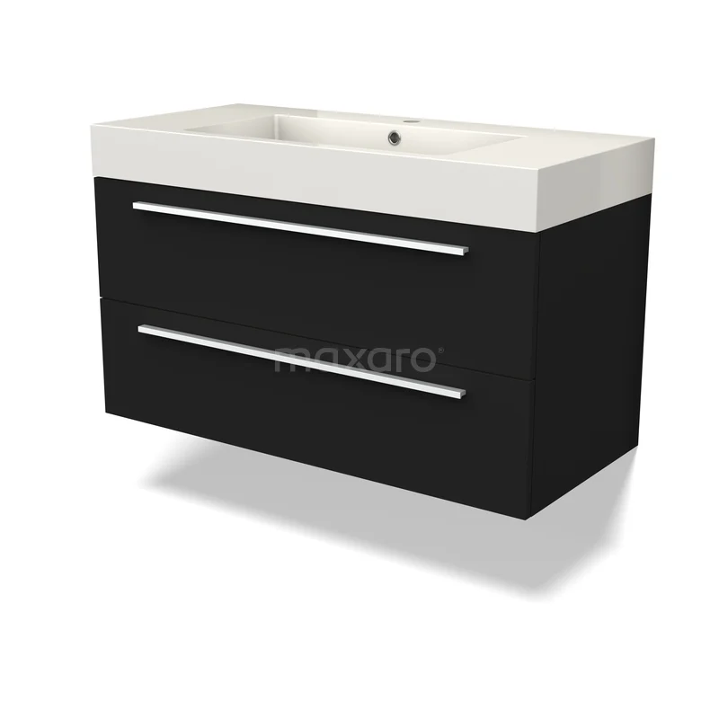 Canto Bathroom furniture with sink | 100 cm Black front Mineral marble 2 Stacked drawers