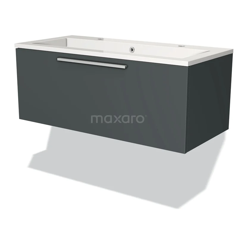 Modulo Bathroom furniture with sink | 100 cm Dark grey Flat front Mineral marble 1 drawer