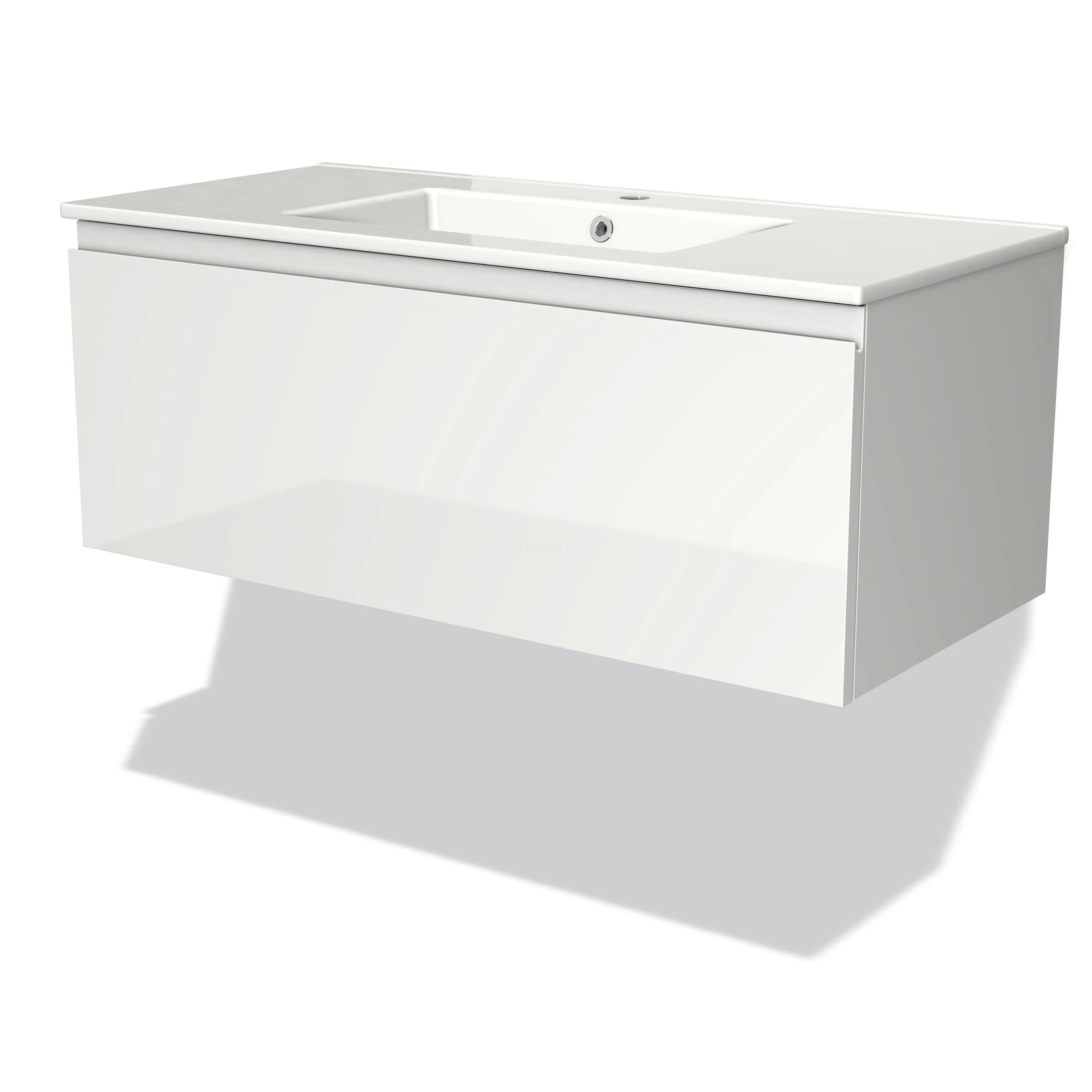 Modulo Bathroom furniture with sink | 100 cm High-gloss white Handle-less front Ceramic 1 drawer