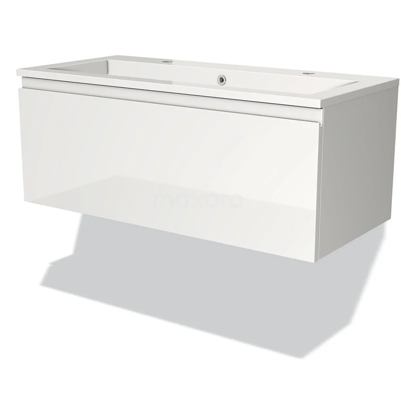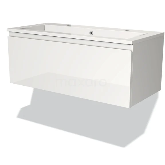 Modulo Bathroom furniture with sink | 100 cm High-gloss white Handle-less front Mineral marble 1 drawer