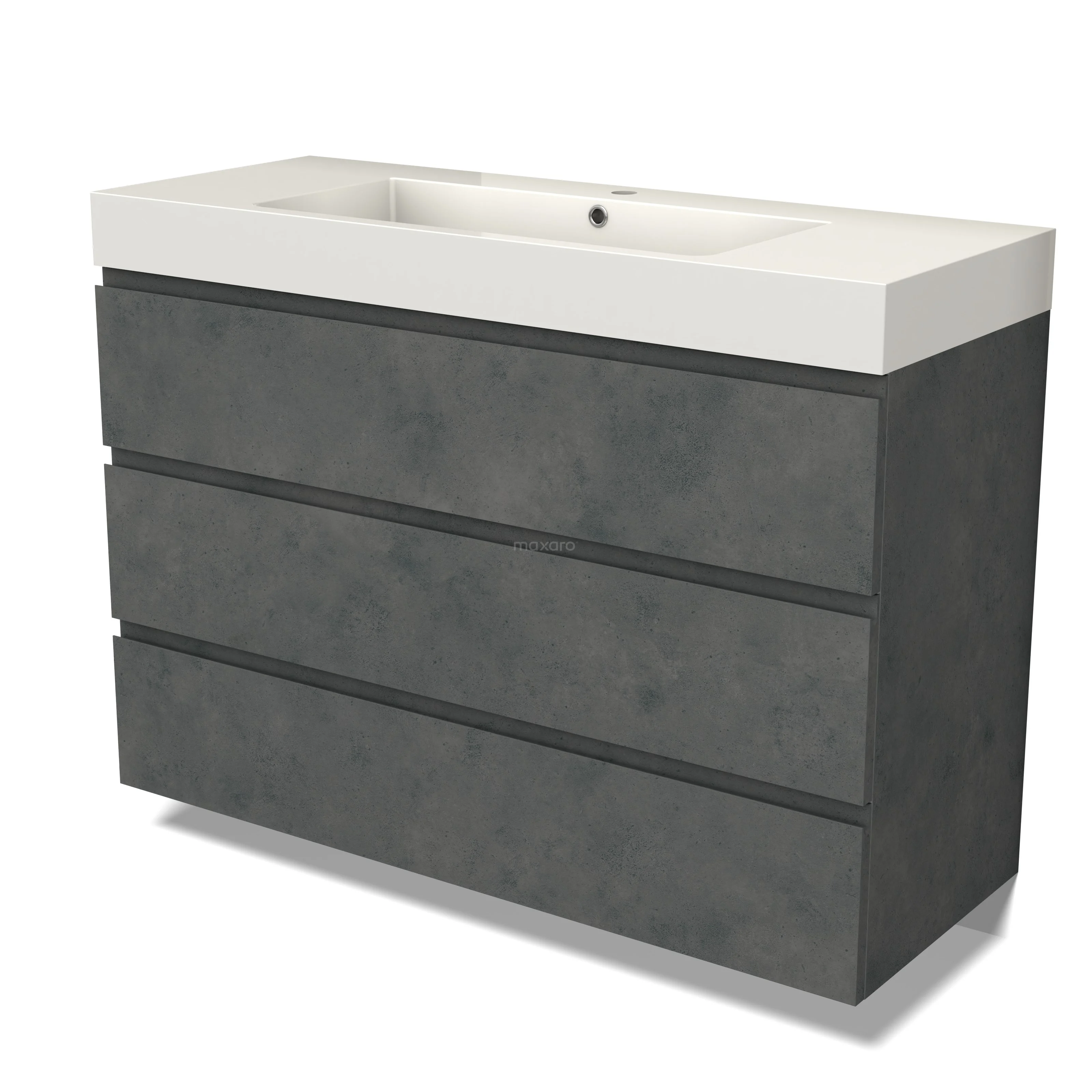 Modulo Bathroom furniture with sink | 120 cm Dark grey concrete Handle-less front Mineral marble 3 drawers