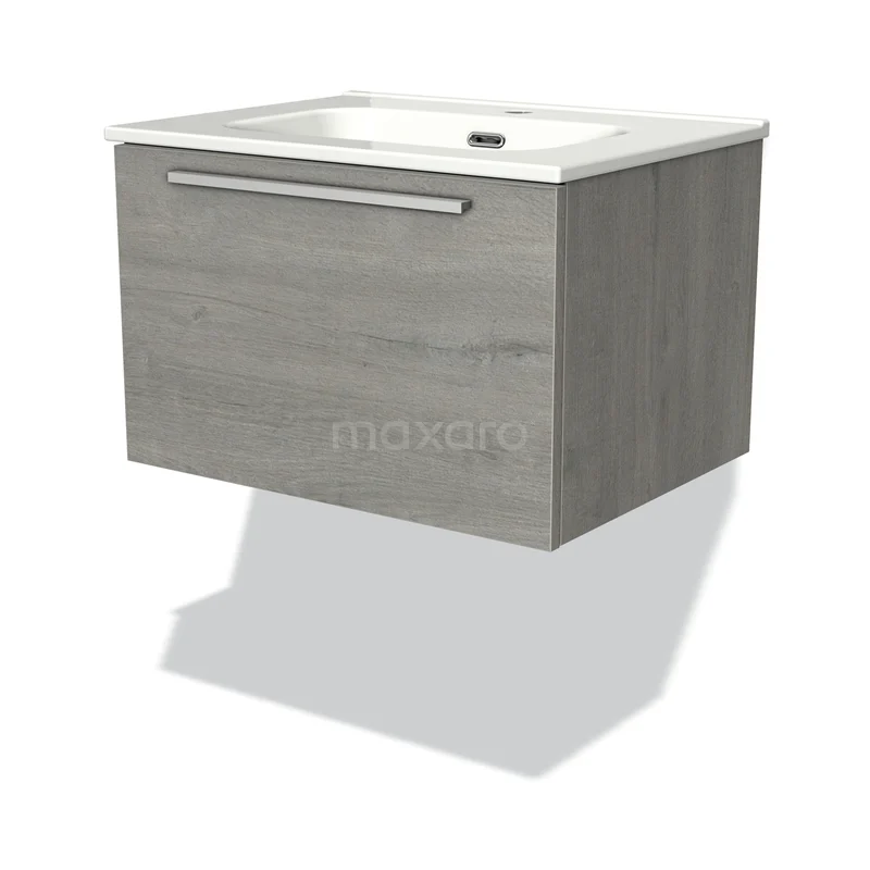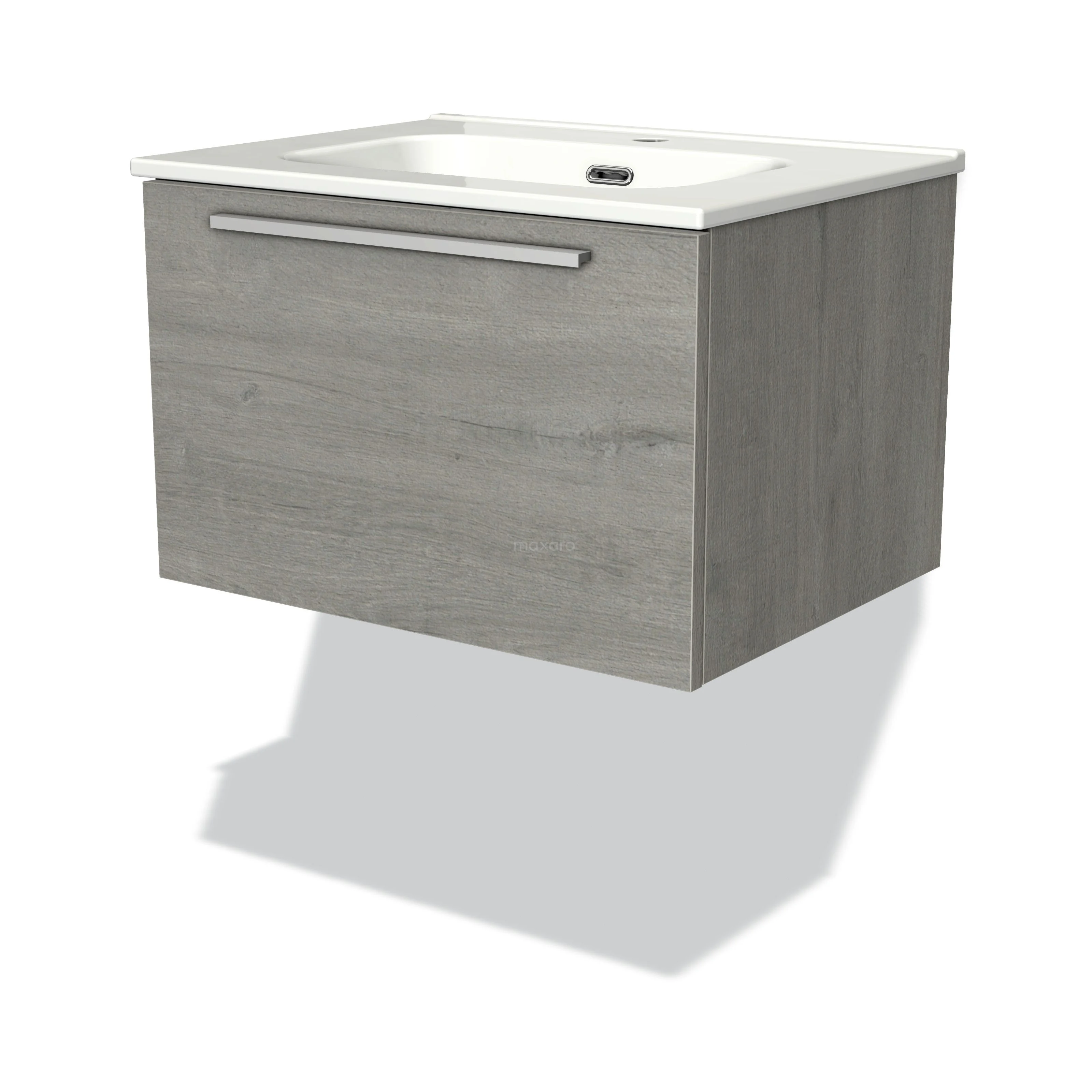 Modulo Bathroom furniture with sink | 60 cm Grey oak Flat front Ceramic 1 drawer