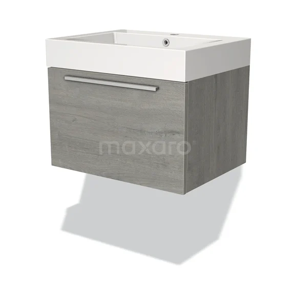 Modulo Bathroom furniture with sink | 60 cm Grey oak Flat front Mineral marble 1 drawer