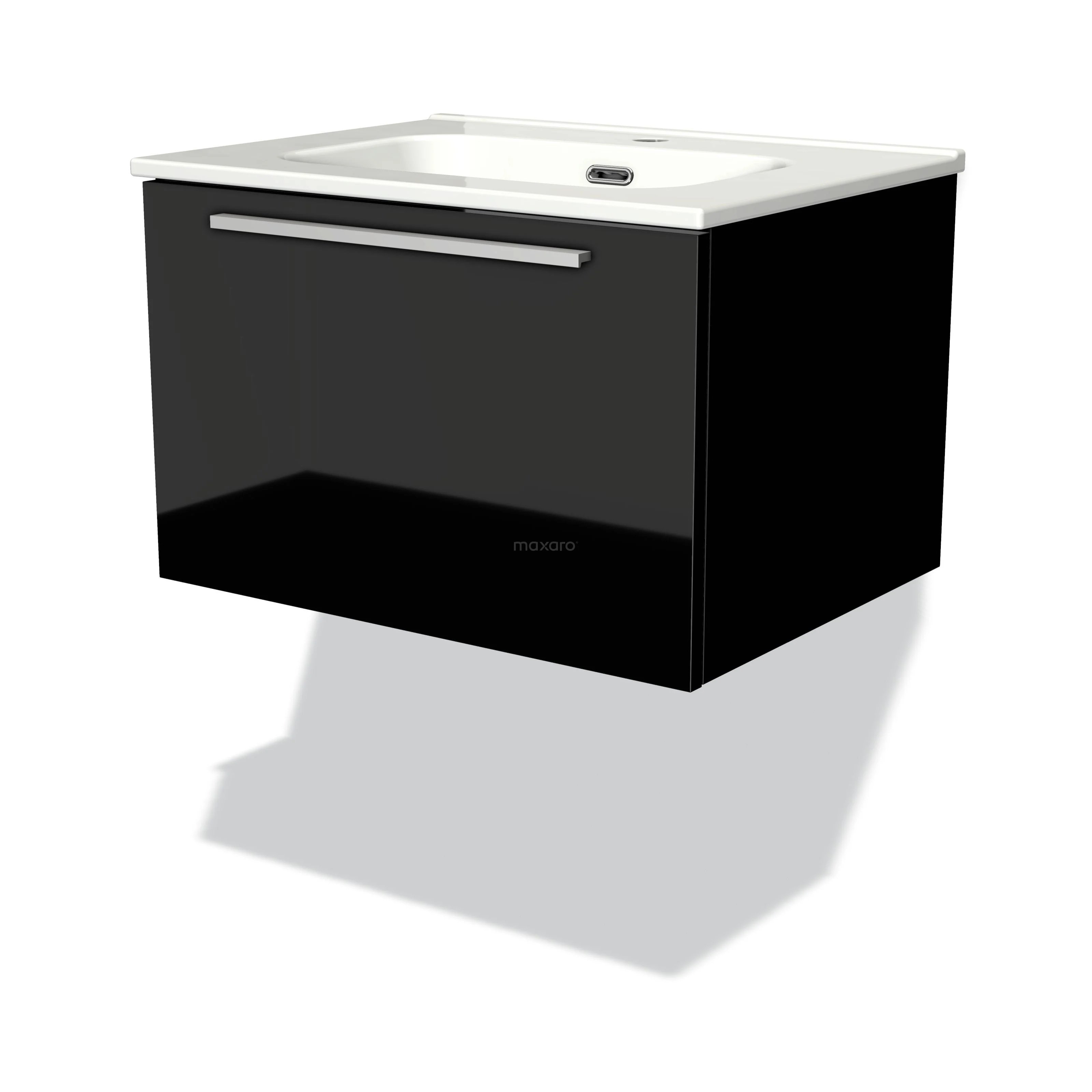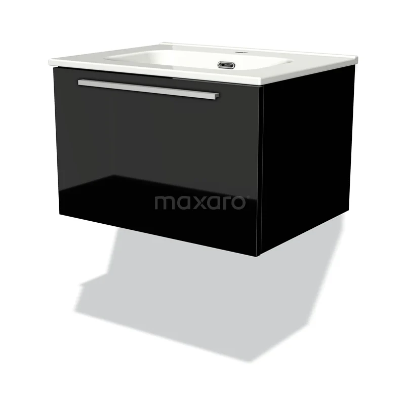 Modulo Bathroom furniture with sink | 60 cm High-gloss black Flat front Ceramic 1 drawer
