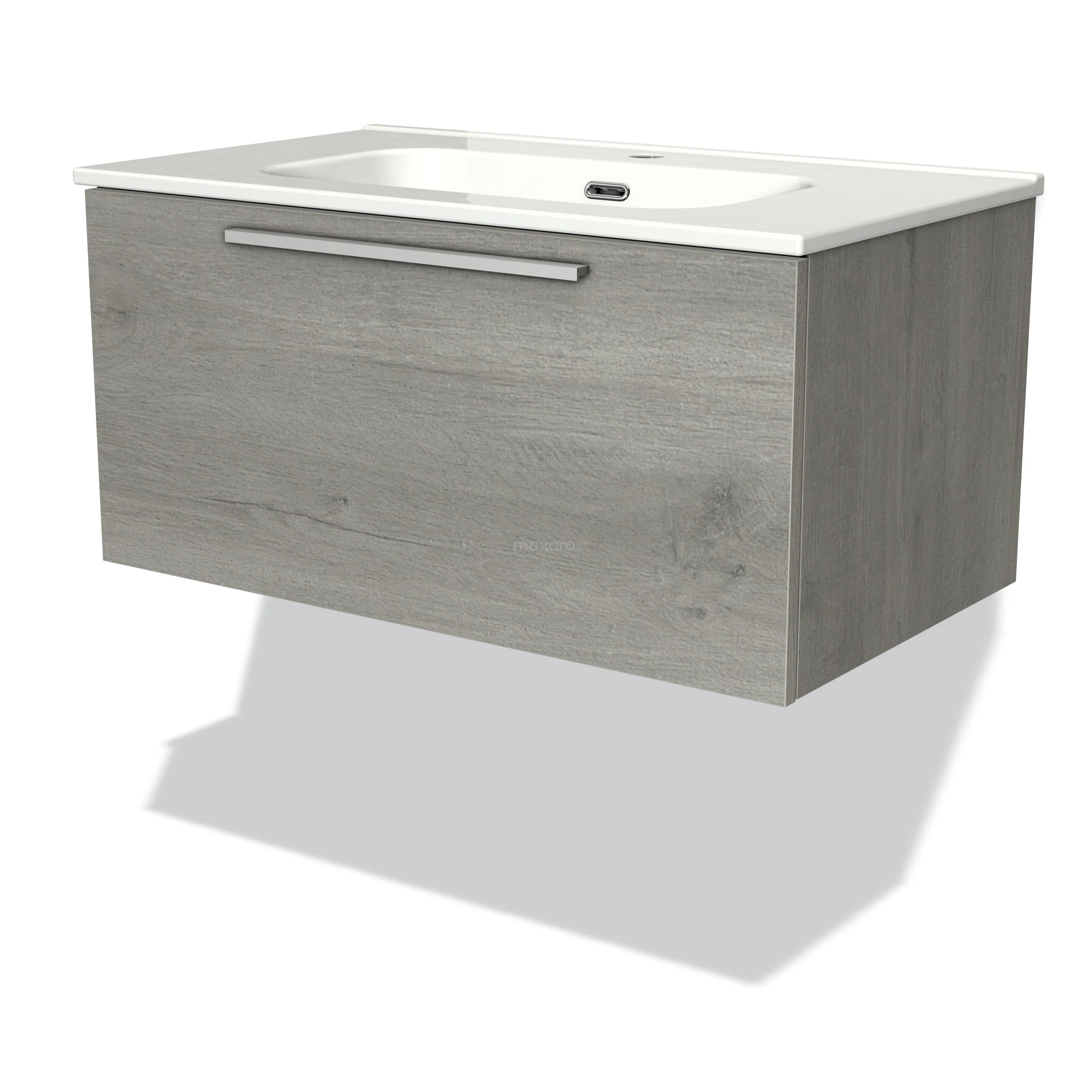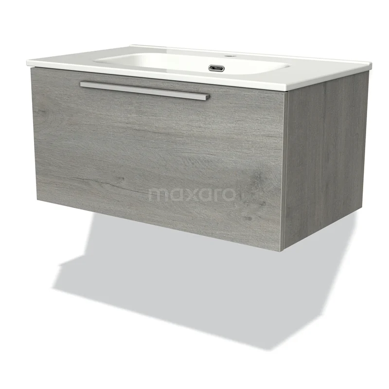 Modulo Bathroom furniture with sink | 80 cm Grey oak Flat front Ceramic 1 drawer