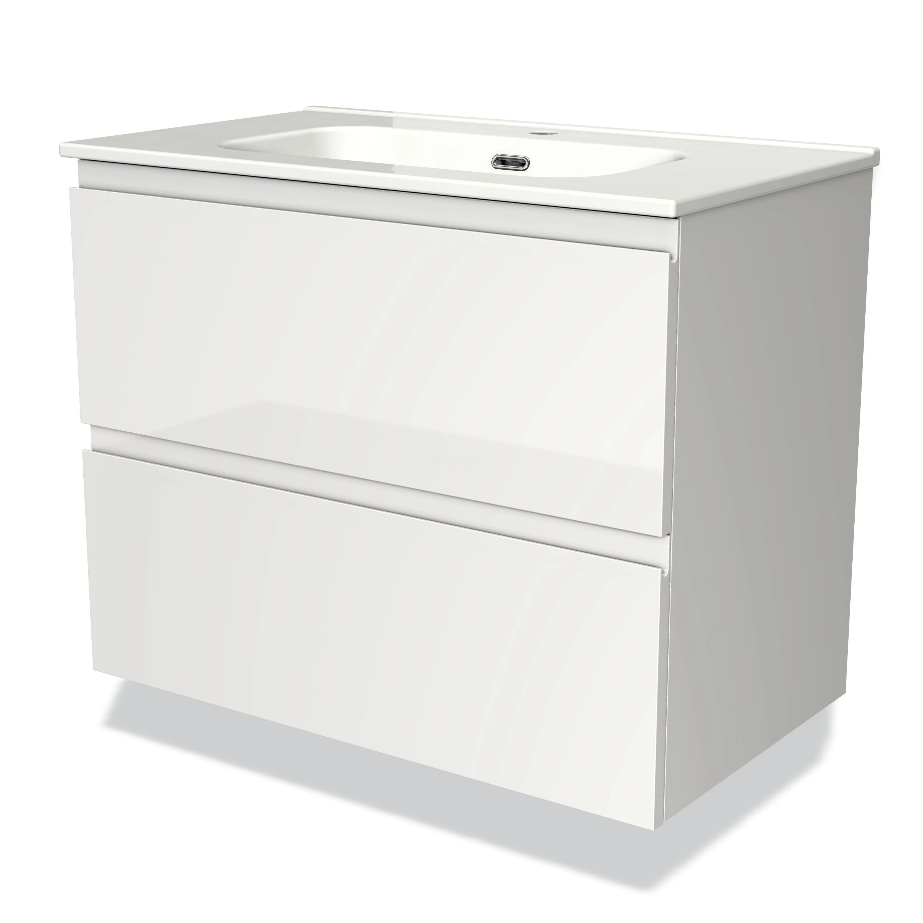 Modulo Bathroom furniture with sink | 80 cm High-gloss white Handle-less front Ceramic 2 Stacked drawers
