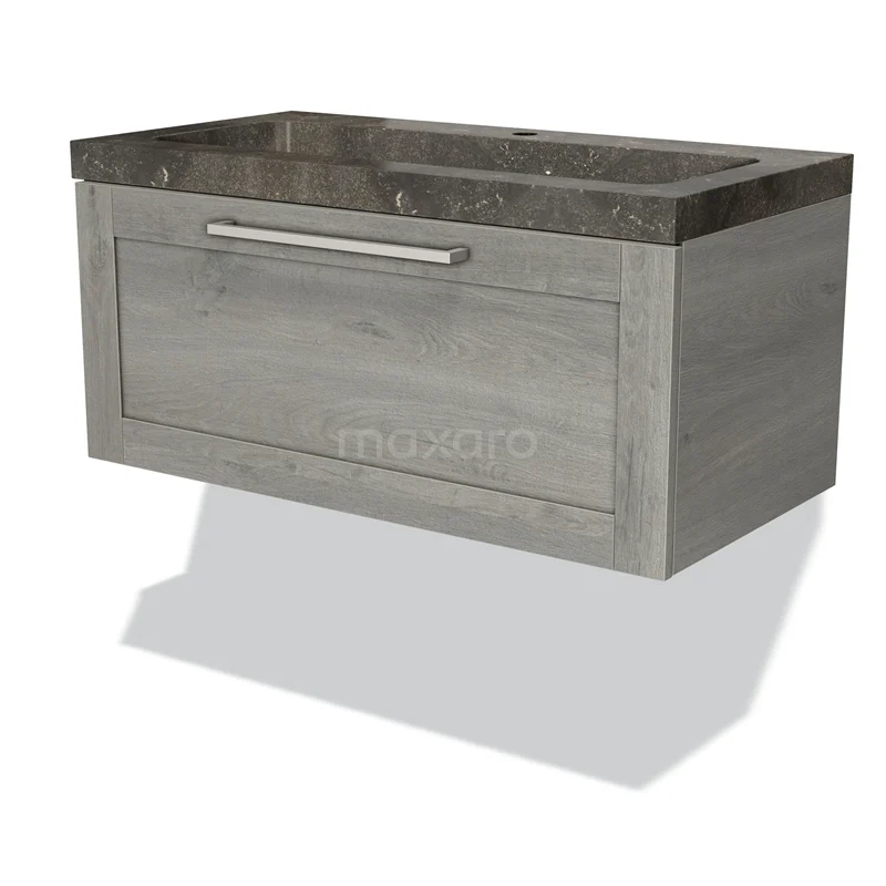Modulo Bathroom furniture with sink | 90 cm Grey oak Frame front Natural stone 1 drawer