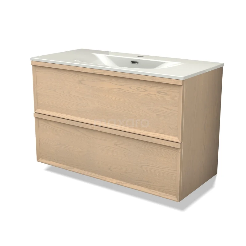 Modulo Plus Bathroom furniture with sink | 100 cm Natural oak Facet front Ceramic 2 Stacked drawers