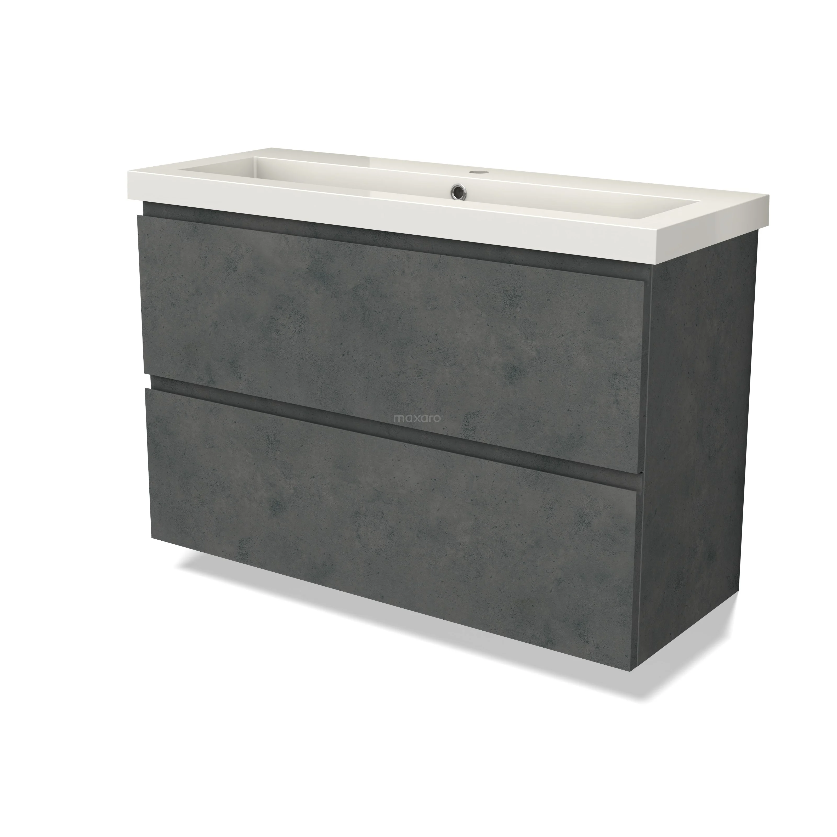 Modulo Slim Bathroom furniture with sink | 100 cm Dark grey concrete Handle-less front Mineral marble 2 Stacked drawers