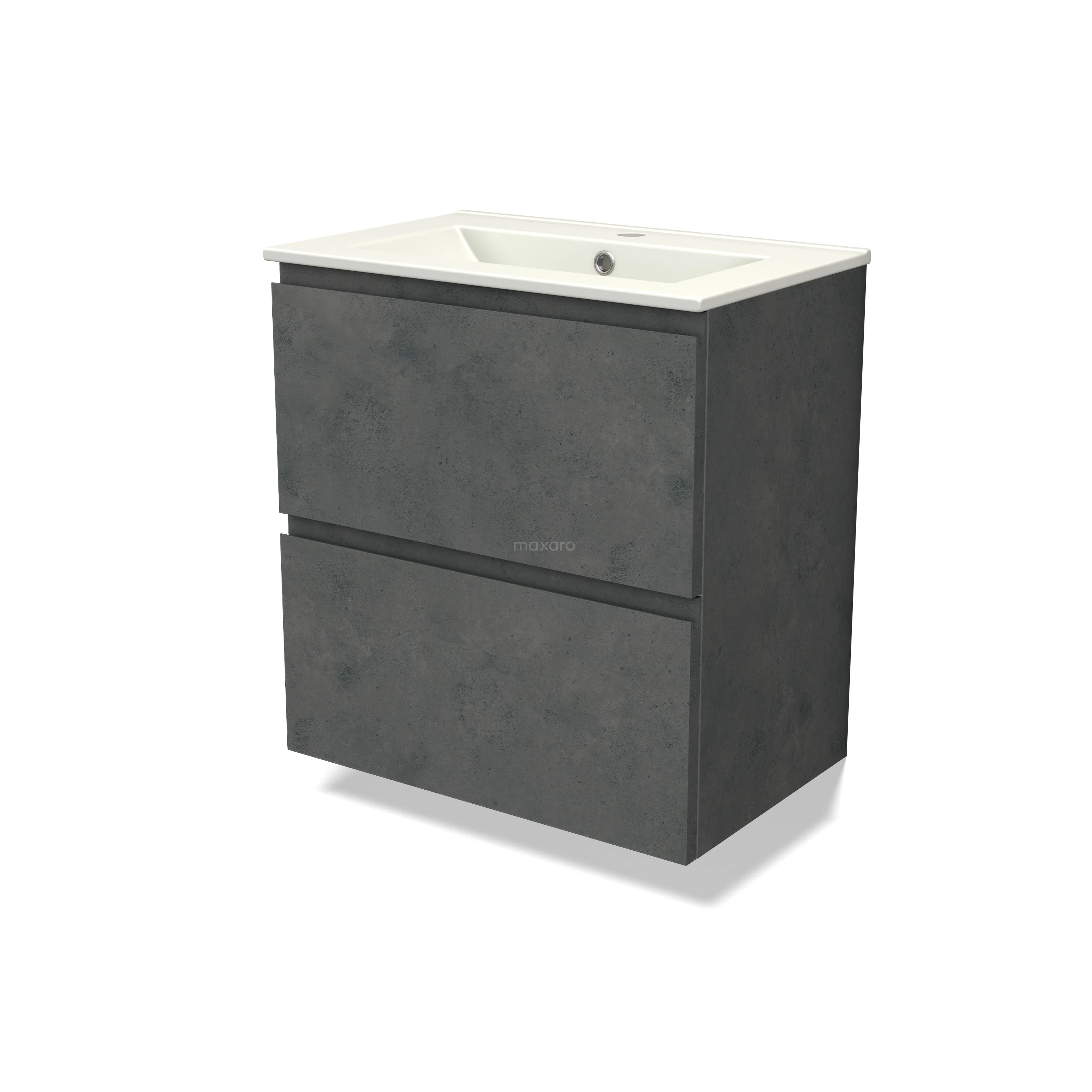 Modulo Slim Bathroom furniture with sink | 60 cm Dark grey concrete Handle-less front Ceramic 2 Stacked drawers