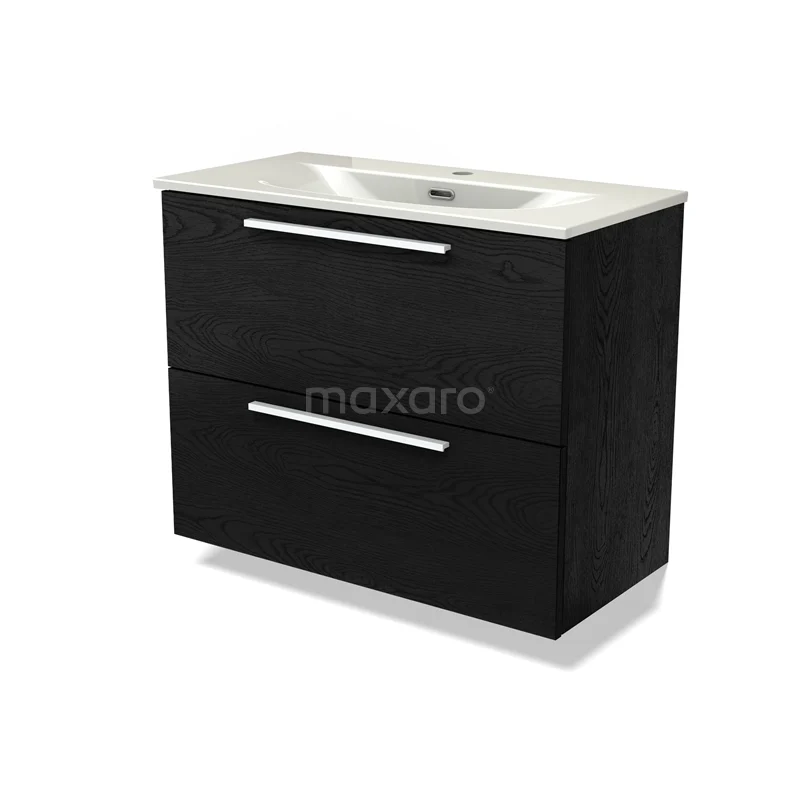 Modulo Slim Bathroom furniture with sink | 80 cm Black oak Flat front Ceramic 2 Stacked drawers