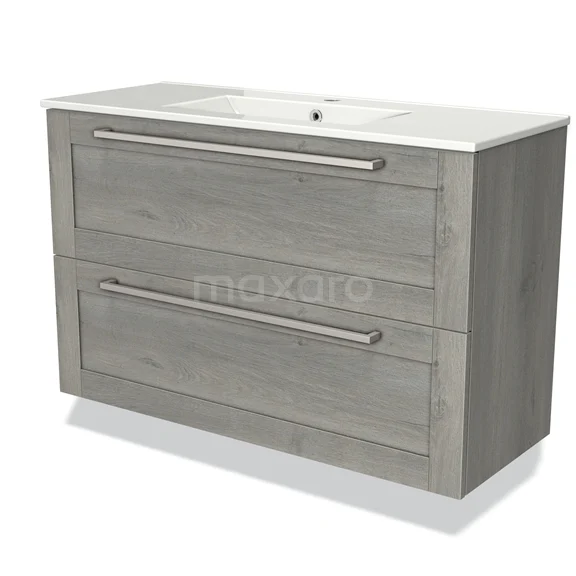 Modulo Slim Vanity units with basin | 100 cm Grey oak Frame front Ceramic 2 Stacked drawers