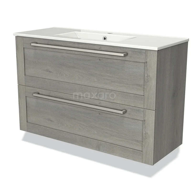 Stylish design The stylish design makes this bathroom unit the eye-catcher of your bathroom. The base cabinet features a framed front and has a grey oak finish. This beautiful oak look is an attractive addition to your bathroom interior. In addition, the framed front adds a classic touch. You will need to joint the handles yourself. These are available in different colours and shapes.