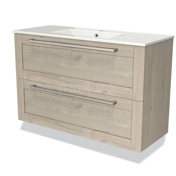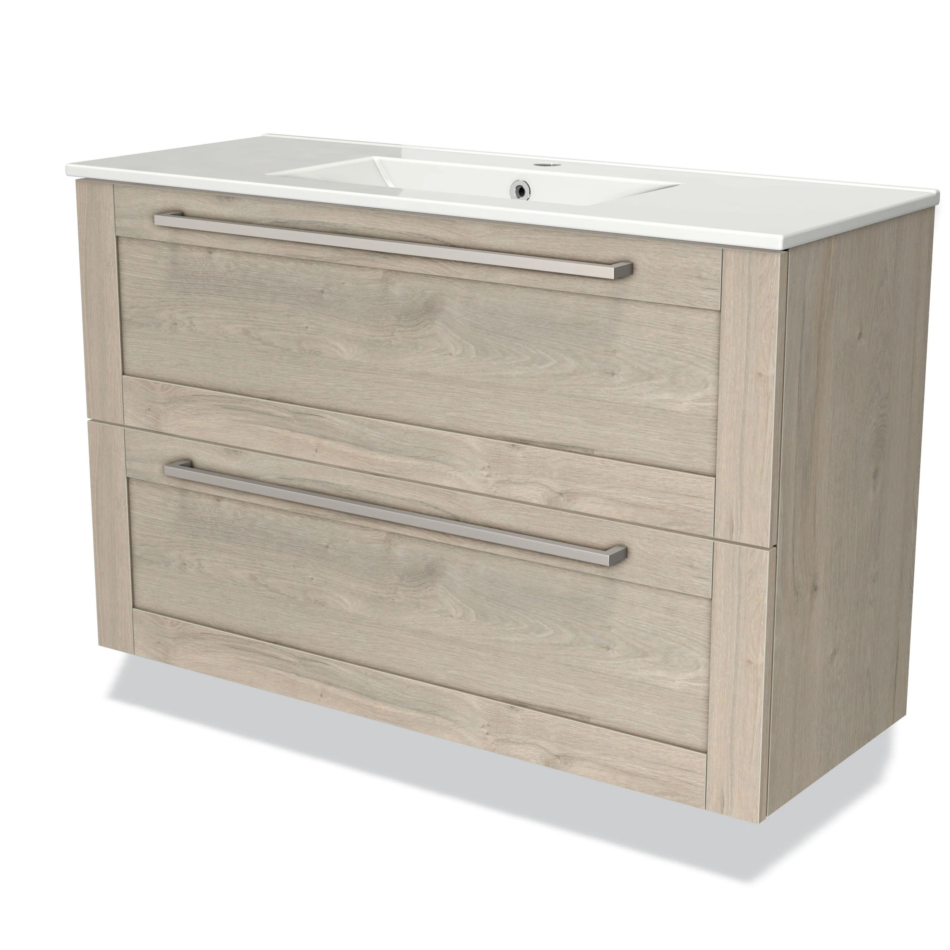 Modulo Slim Vanity units with basin | 100 cm Light grey oak Frame front Ceramic 2 Stacked drawers