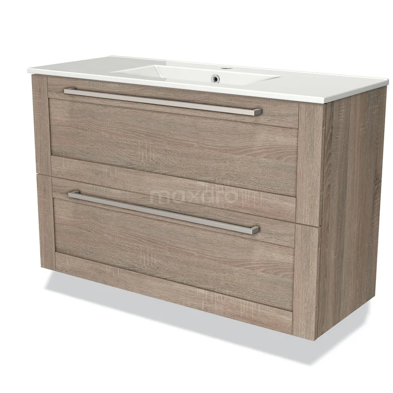 Stylish design The stylish design makes this bathroom unit the eye-catcher of your bathroom. The base cabinet features a framed front and has an Oak finish. This beautiful oak look creates a warm atmosphere in your bathroom interior. In addition, the framed front adds a classic touch. You need to joint the handles yourself. These are available in different colours and shapes.