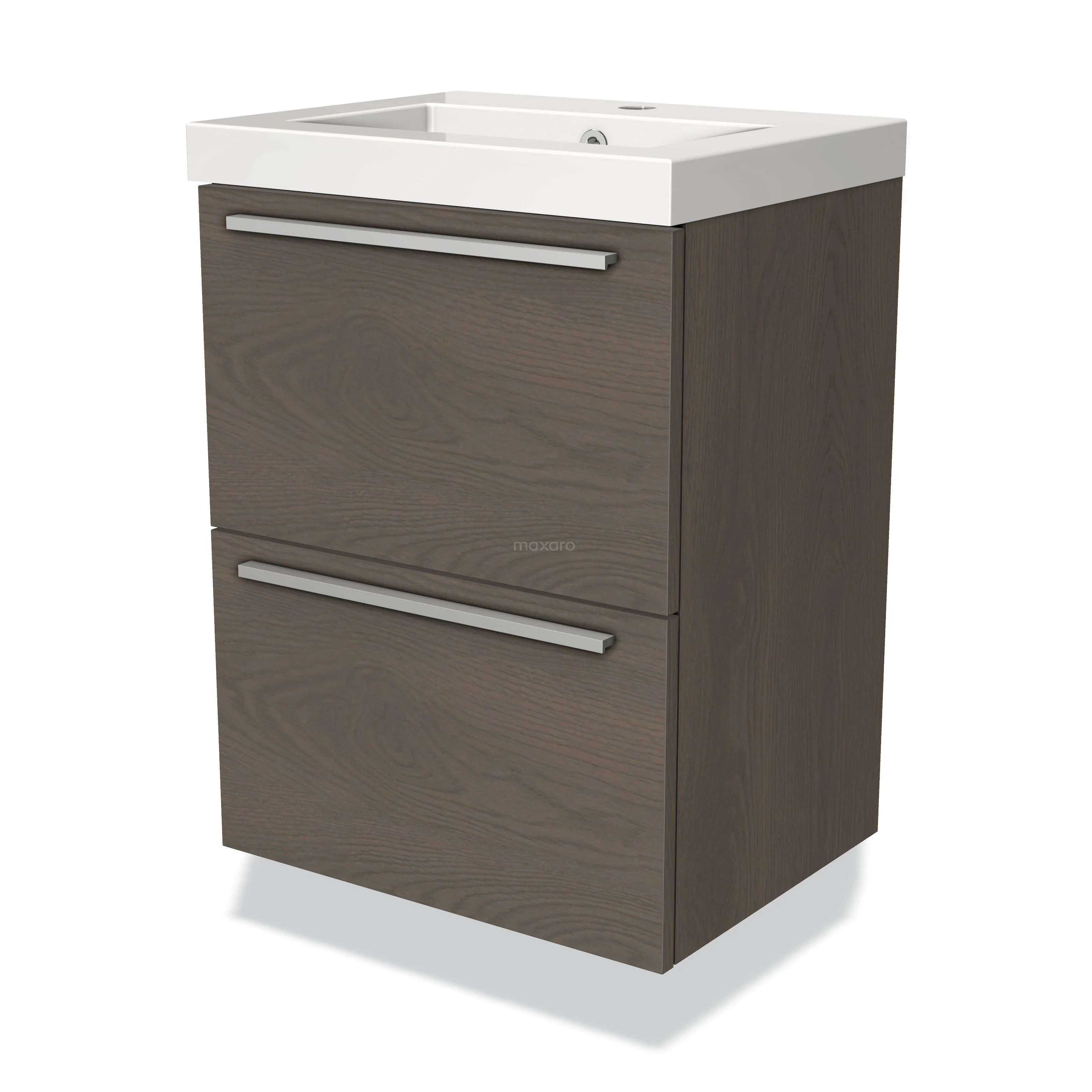 Modulo Slim Vanity units with basin | 50 cm Dark brown oak Flat front Mineral marble 2 Stacked drawers