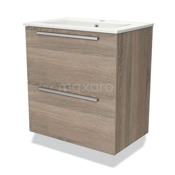 Modulo Slim Vanity units with basin | 60 cm Oak Flat front Ceramic 2 Stacked drawers