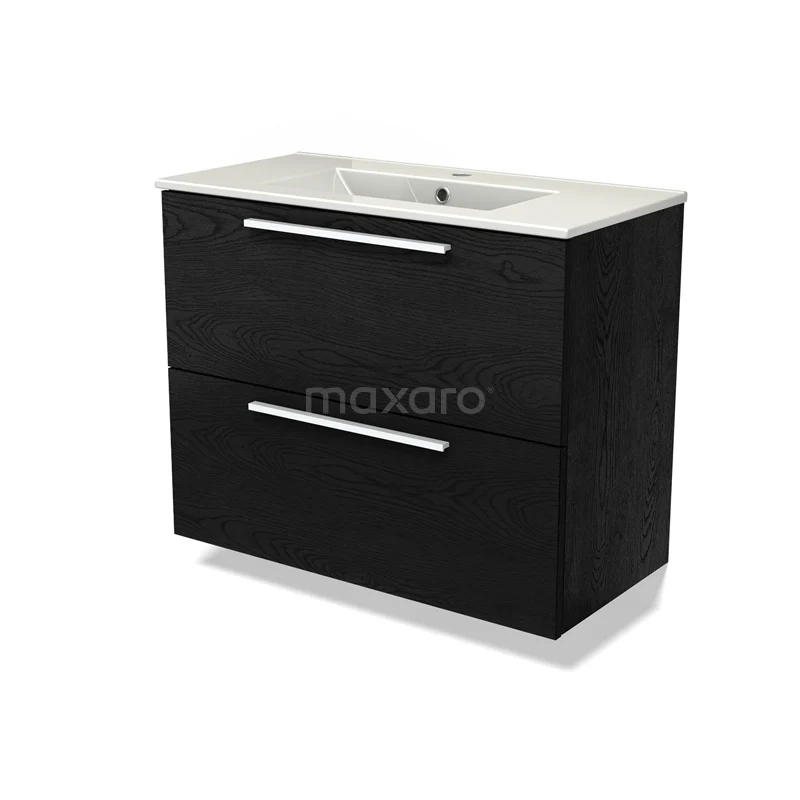 Modulo Slim Vanity units with basin | 80 cm Black oak Flat front Ceramic 2 Stacked drawers