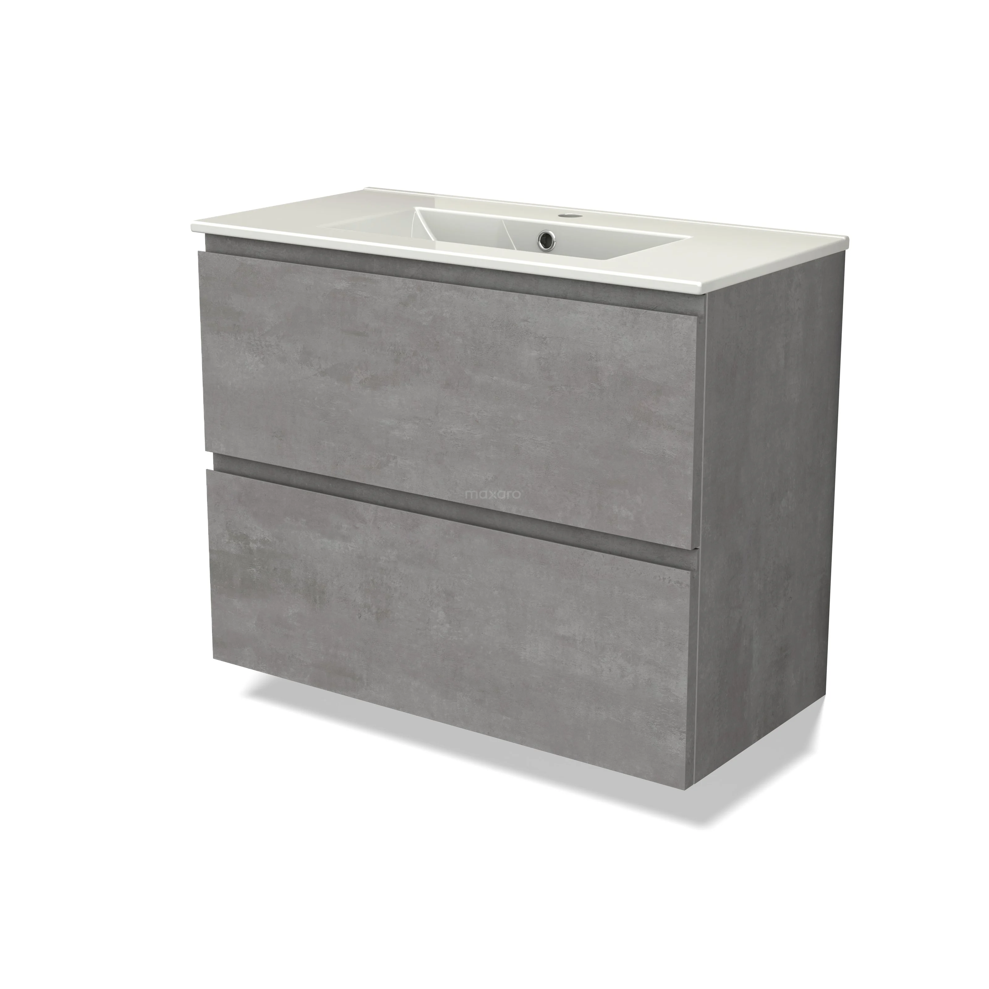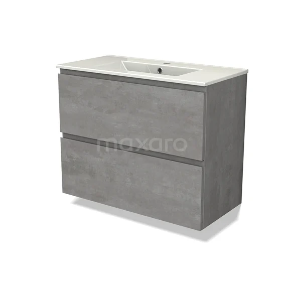 Modulo Slim Vanity units with basin | 80 cm Light grey concrete Handle-less front Ceramic 2 Stacked drawers