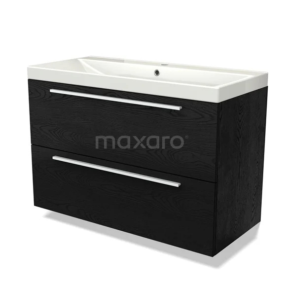 Modulo Vanity units with basin | 100 cm Black oak Flat front Ceramic 2 Stacked drawers