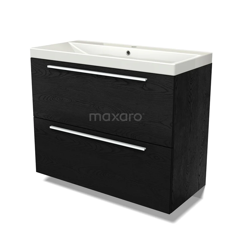 Modulo Vanity units with basin | 100 cm Black oak Flat front Ceramic 2 stacked drawers under each other