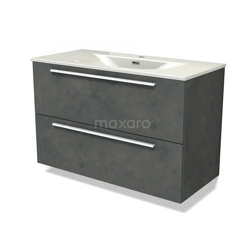 Modulo Vanity units with basin | 100 cm Dark grey concrete Flat front Ceramic 2 Stacked drawers