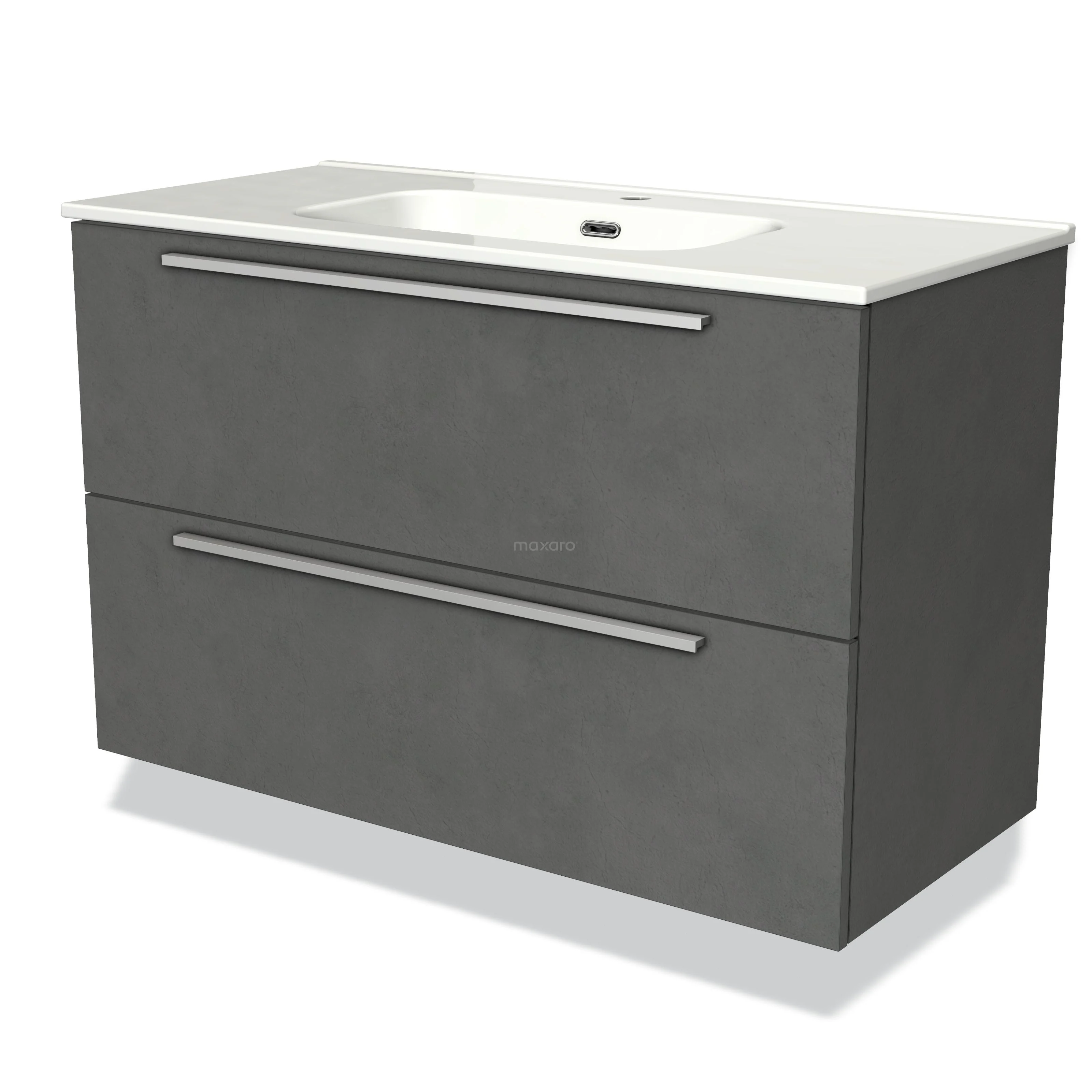 Modulo Vanity units with basin | 100 cm Dark grey concrete Flat front Ceramic 2 Stacked drawers