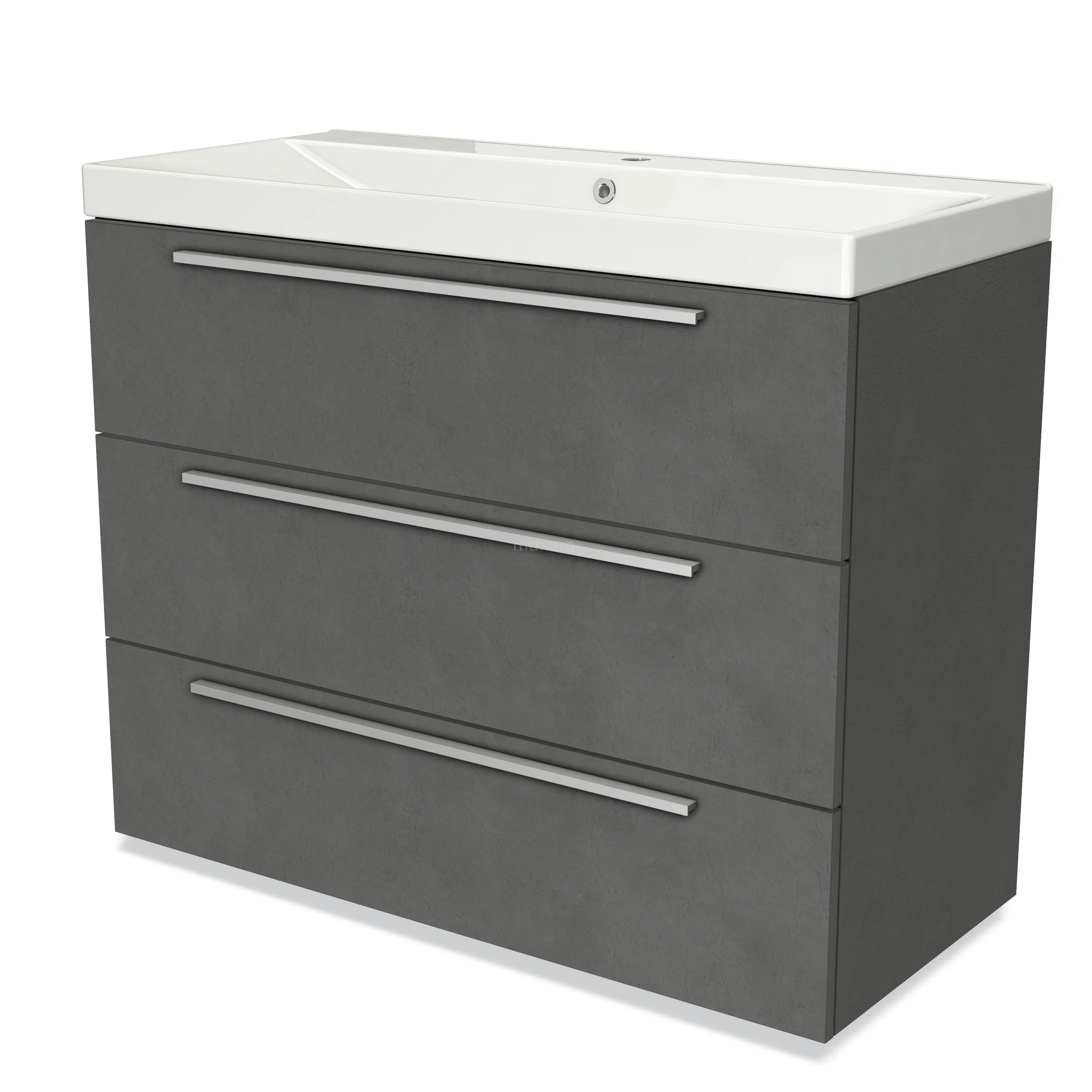 Modulo Vanity units with basin | 100 cm Dark grey concrete Flat front Ceramic 3 drawers