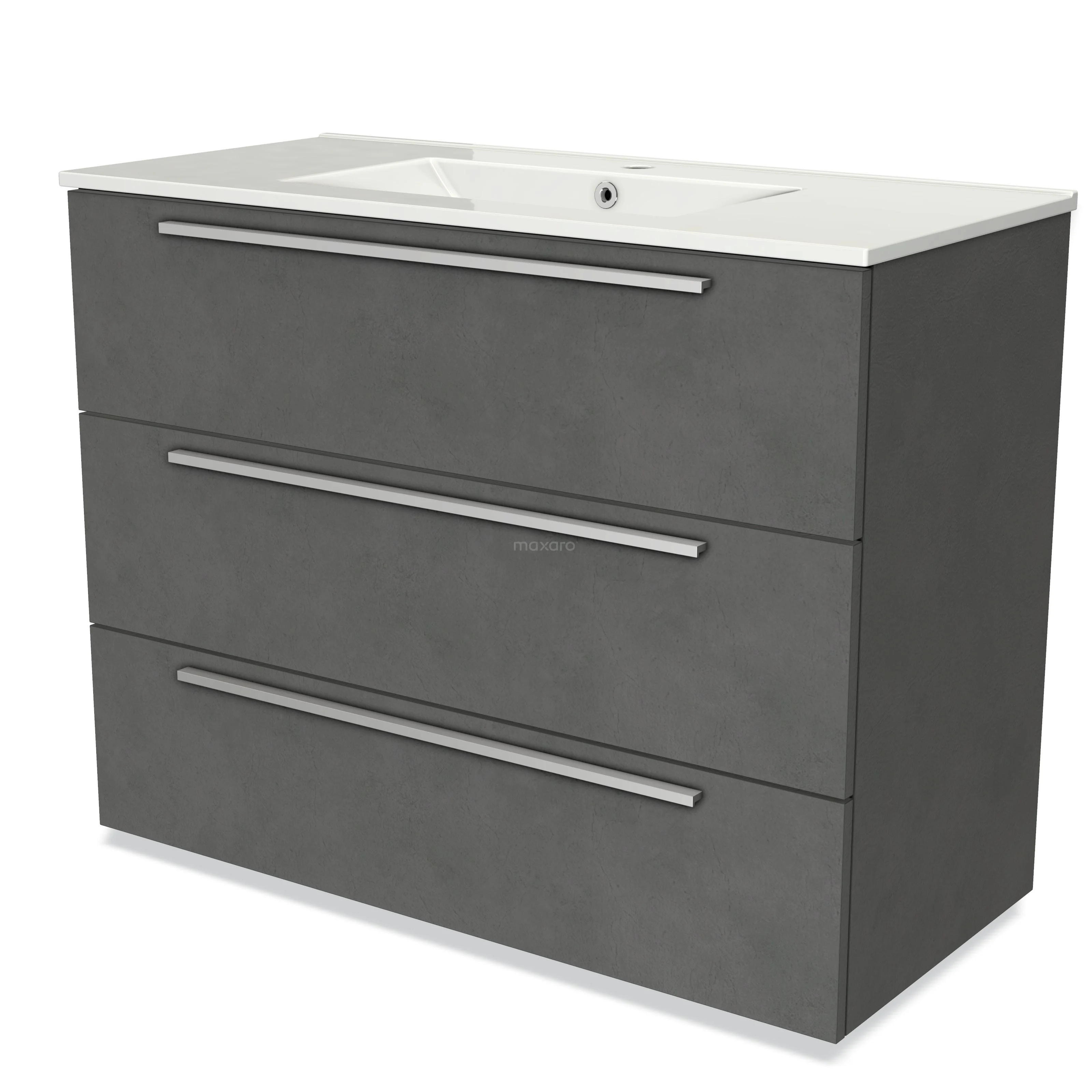 Modulo Vanity units with basin | 100 cm Dark grey concrete Flat front Ceramic 3 drawers